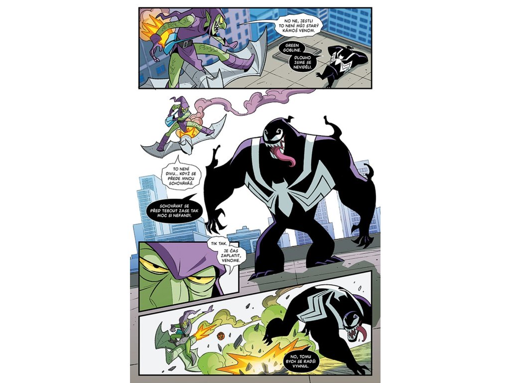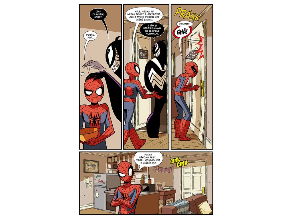 Připravte se, že uvidíte Spider-Mana a Venoma tak, jak jste je ještě nikdy neviděli – jako rozhádané spolubydlící! Je to vážně zábava toho nejulítlejšího druhu. Spidey a Venom si navzájem vymění těla. Ale kdo za tímhle šíleným experimentem stojí… a o co mu jde? To se brzy dozvíte sami – v tomhle zbrusu novém příběhu, který je parádně nakreslený ve stylu animovaných grotesek!