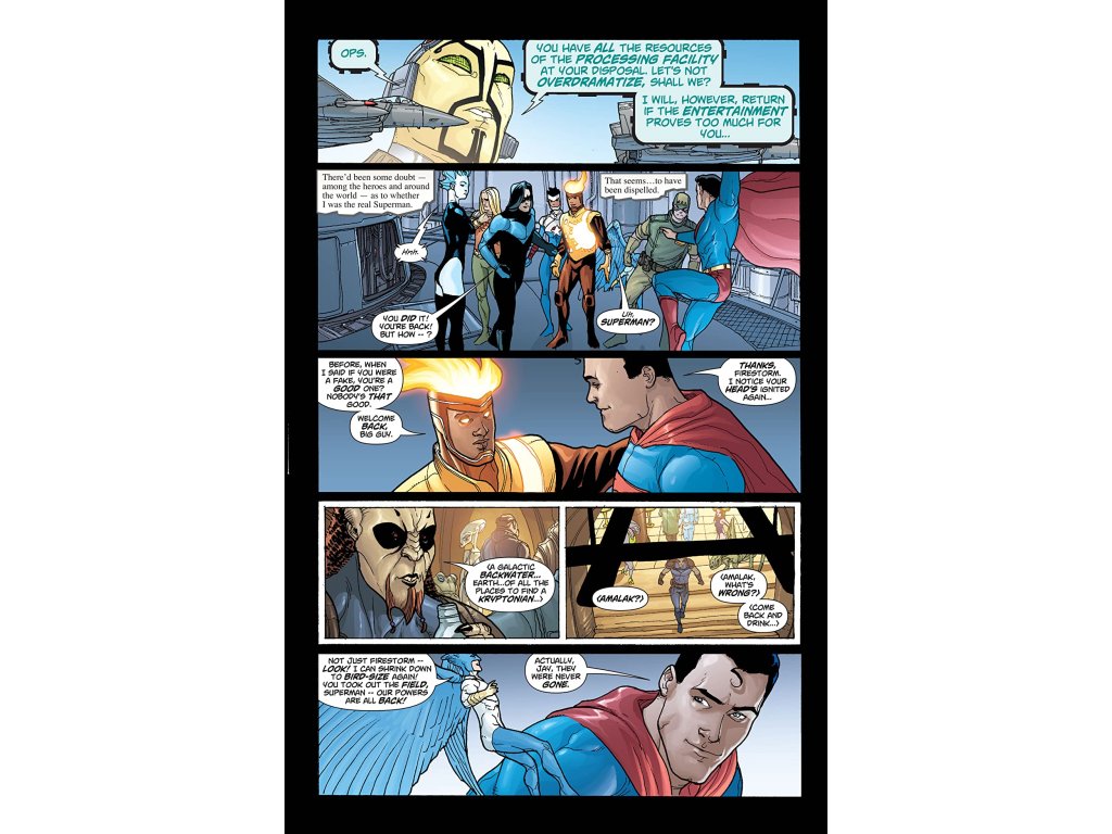 It's the cosmic wrap-up for Superman and his allies as they battle an alien invader who's like nothing they've fought before! Superman discovers a compelling secret ? one that could swing the conflict in his favor ? but without powers, how can he or the Titans prevail?