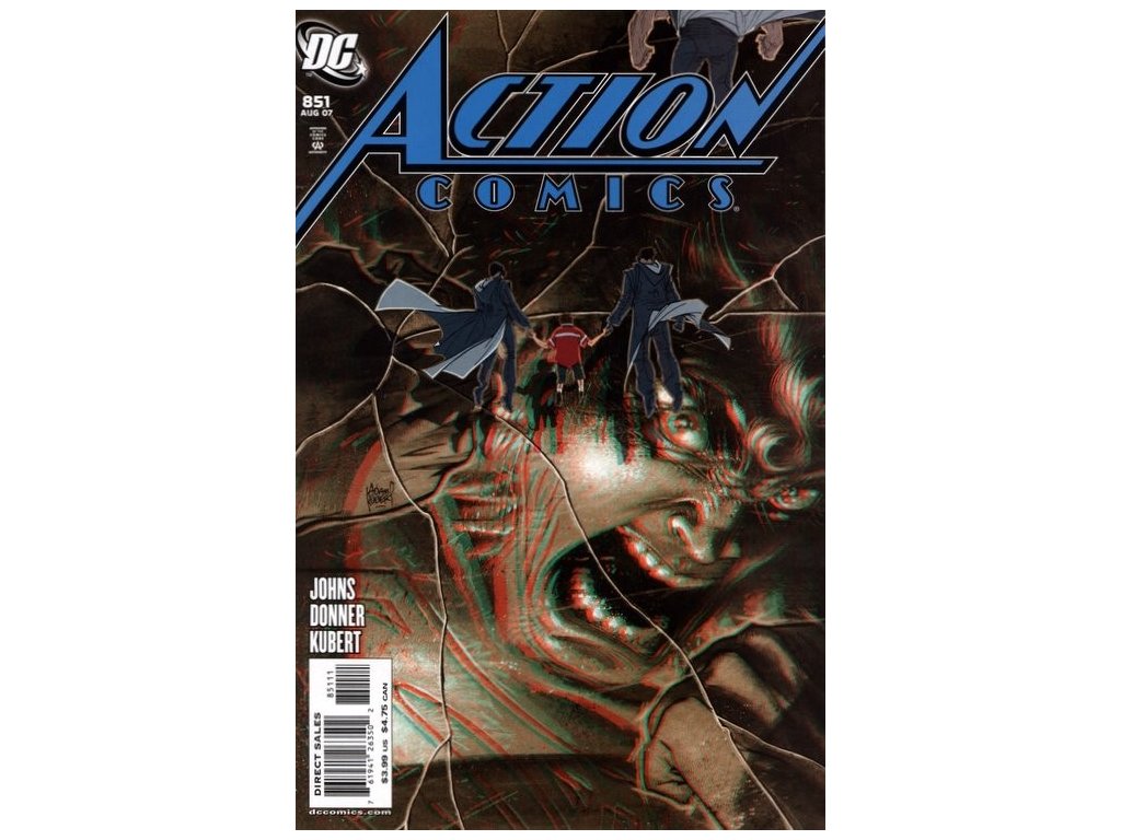 Part 4 of the landmark "Last Son" story, by Geoff Johns, Richard Donner and Adam Kubert! Superman travels to a place so alien and strange, it could only be presented in a special 3-D section, featuring 3-D effects by Ray Zone! That's right, the action in ACTION takes on a whole new meaning as this benchmark story takes a sharp turn into the third dimension! Plus, meet the all-new Superman Revenge Squad!