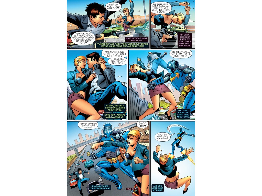 So far, Nightwing and Flamebird's mission of apprehending Zod's sleeper agents has gone fairly smoothly. But then they met Az-Rel and Nadira Va-Dim. Now the "Bonnie and Clyde of Krypton" have turned the tables on Earth's newest protectors. The race to prevent war with New Krypton may be over before it's even begun! And it's all in preparation for next month's crossover event in the SUPERMAN books!