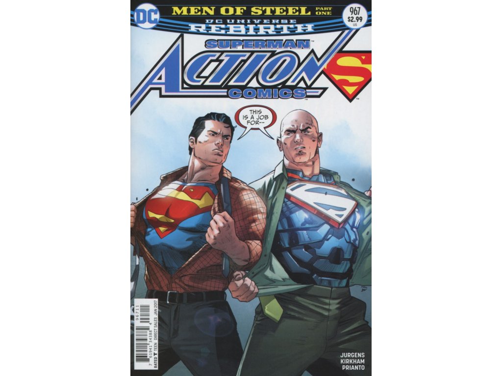 “MEN OF STEEL” part one! LEX LUTHOR is under attack—and only Superman can save him! When the world’s most ingenious scientific mind took on the mantle of Metropolis’ new man of steel, the world took notice—and so did the mysterious Godslayer!