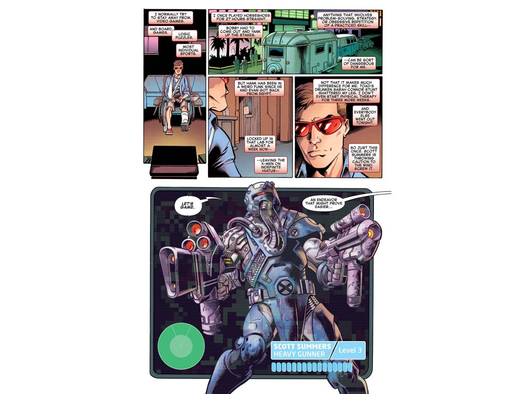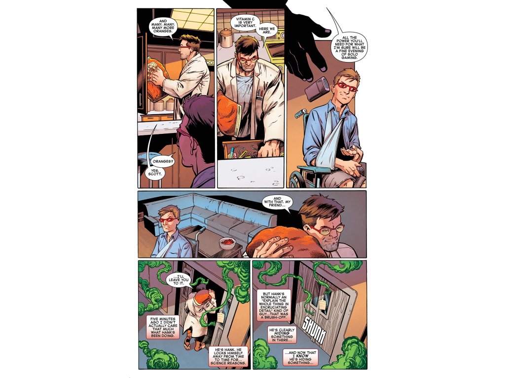 A wheelchair-bound CYCLOPS is stuck in the X-Men's mobile headquarters while all of his teammates jet off across the world on fantastic adventures. Well, almost all of his teammates…BEAST has sequestered himself in his lab, feverishly working on some mysterious new project. In his own version of Rear Window, will Cyclops discover that Hank is meddling with forces that should be left alone, or is he just driving himself mad out of boredom? Or worse — BOTH?