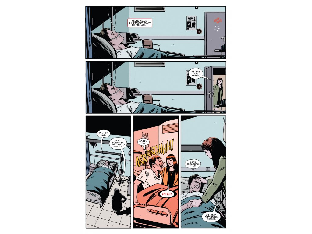 Something horribly wrong is happening at the McCarthy Medical Center. Mary Jane Watson is trying to nurse the bedridden Peter to health, but when Peter’s roommate disappears, MJ has to step up. Can MJ and a nonmobile Peter get to the bottom of this hospital mystery?