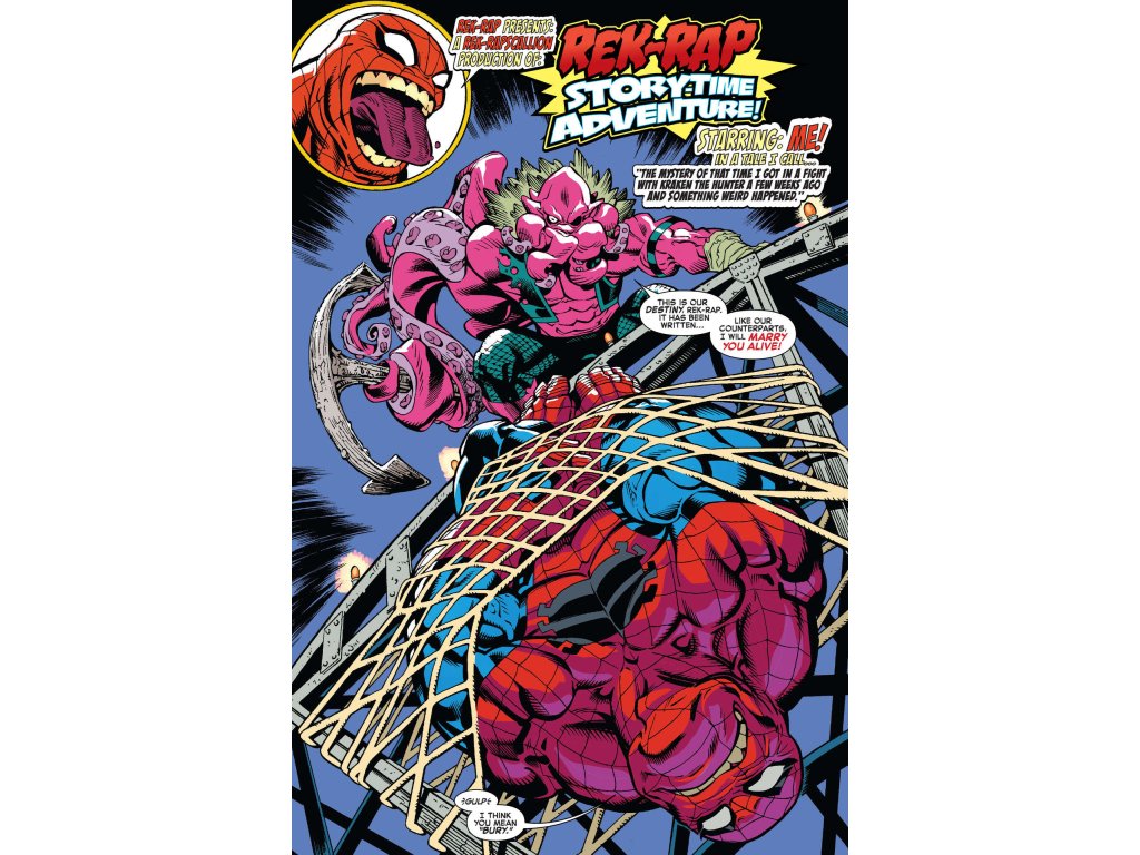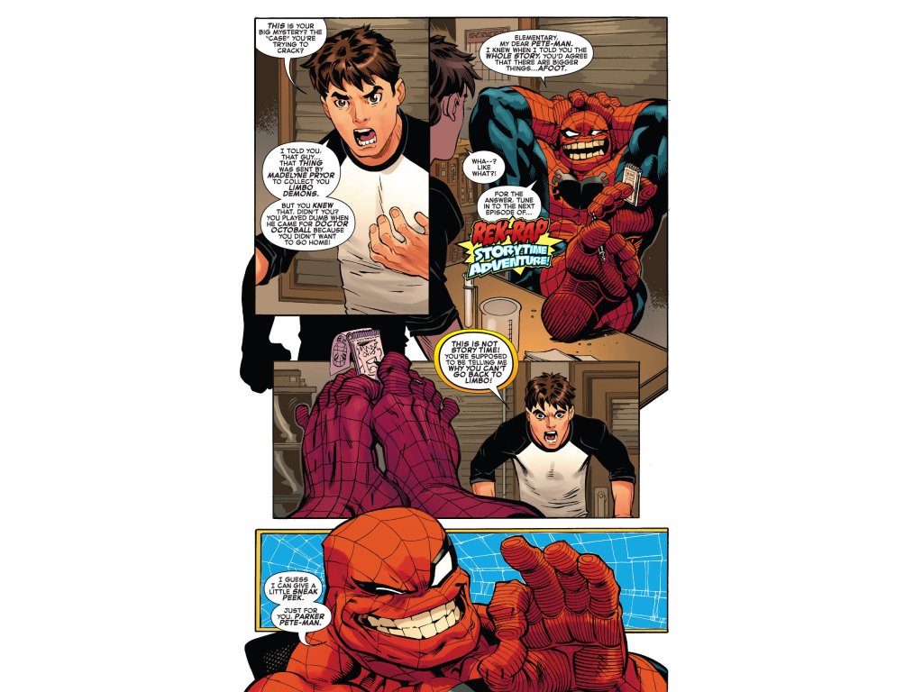 GANG WAR: FIRST STRIKE! Rek-Rap returns! Spider-Man’s fun-house reflection might just be the thing to help the wall-crawler out of the darkness he can’t seem to shake. Well, Rek-Rap MIGHT help if he weren’t targeted by the scariest new Spidey-Villain in decades! GANG WAR IS COMING!