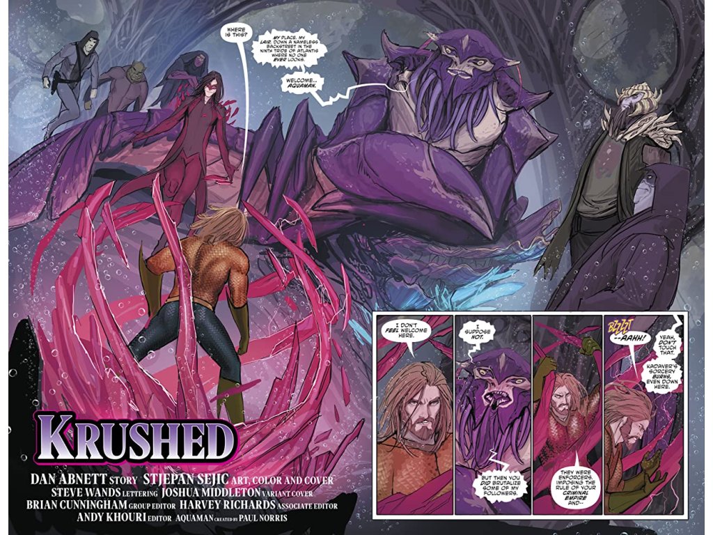 “UNDERWORLD” part three! Aquaman lives! Threatened by the return of Atlantis’ natural-born ruler, King Rath accelerates his plan to scrub the sunken city of all its ancient magical treasures—but why is he stockpiling magic? Whatever the reason, Rath will need all the firepower he can get when Mera breaks through the barrier surrounding the city!