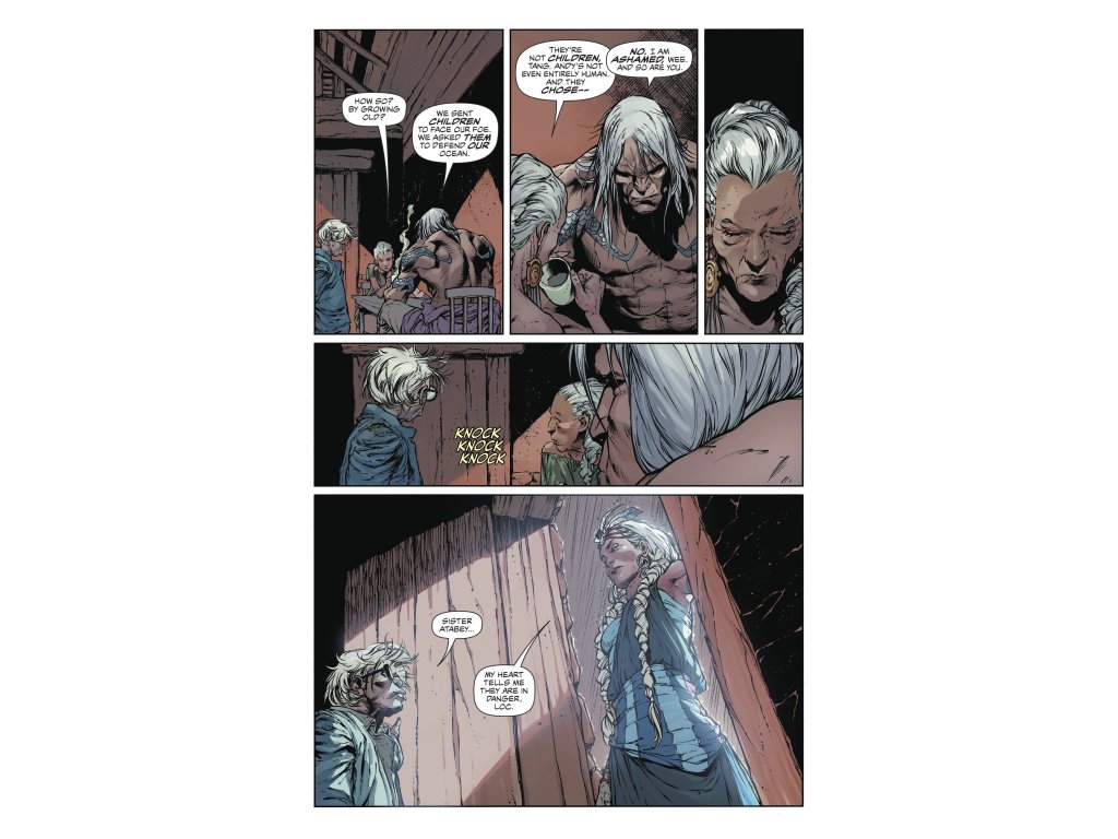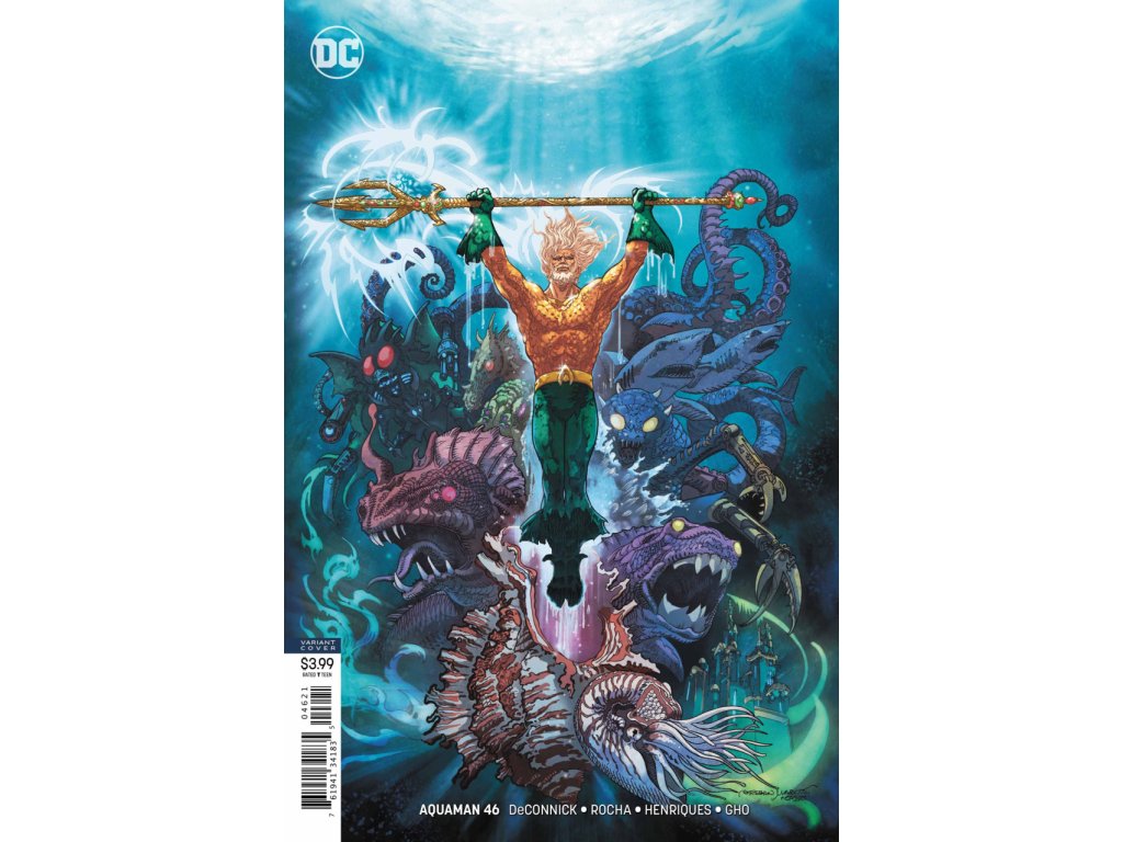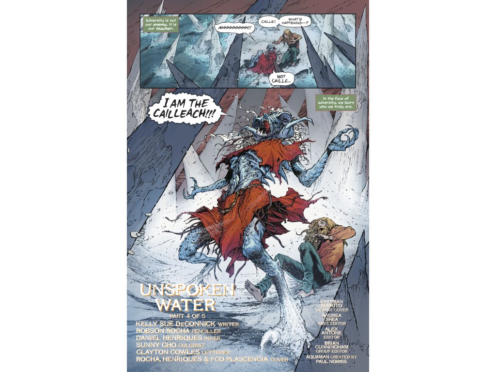 Trapped on Namma’s island with nowhere to run, the amnesiac Aquaman must protect Caille from her mother, who aims to reach her full power at the cost of Caille’s life! Will Aquaman hold his own against the mother of all gods and retrieve his lost memories? Or will Aquaman turn to salt at her hand?