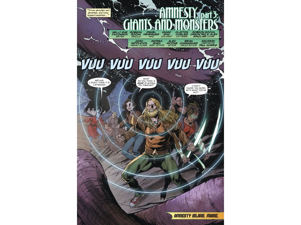Black Manta is reunited with his dead father…but at a great cost to both! Meanwhile, Aquaman’s investigation into the Amnesty Bay killer takes a stunning turn, and Mera must make a life-altering decision!