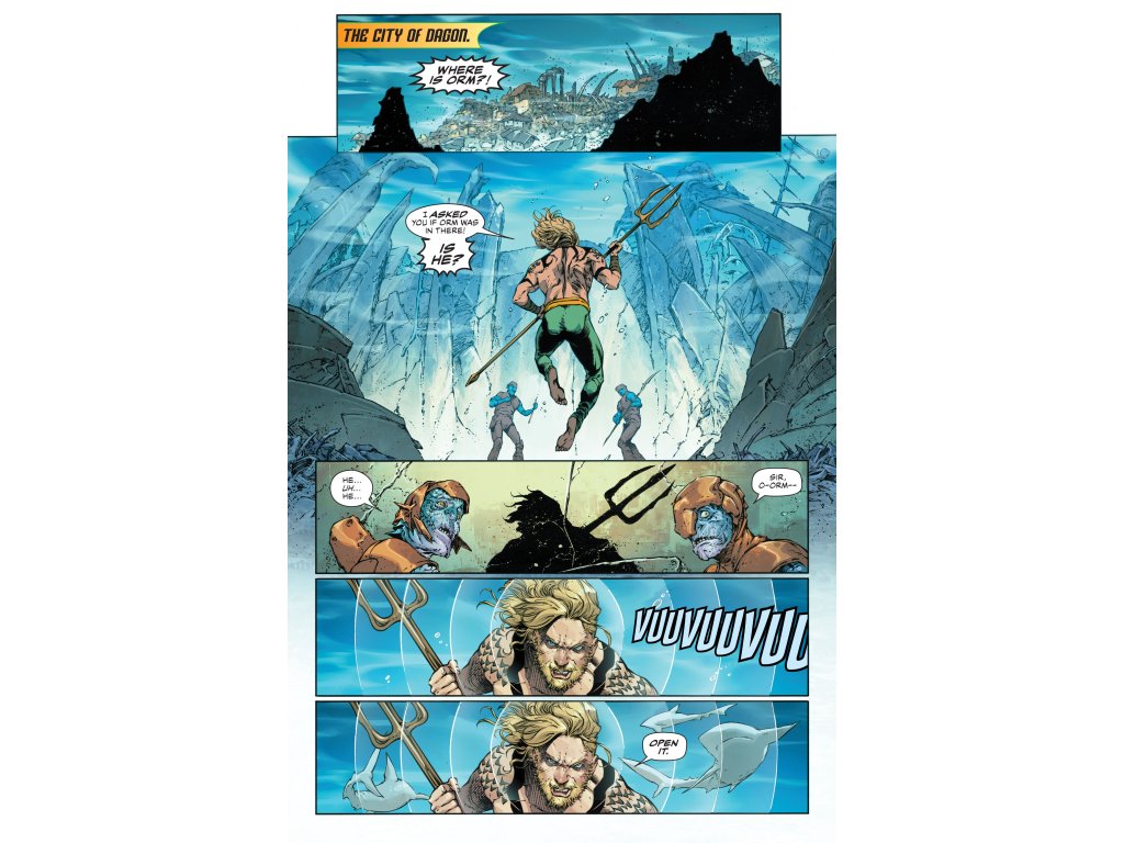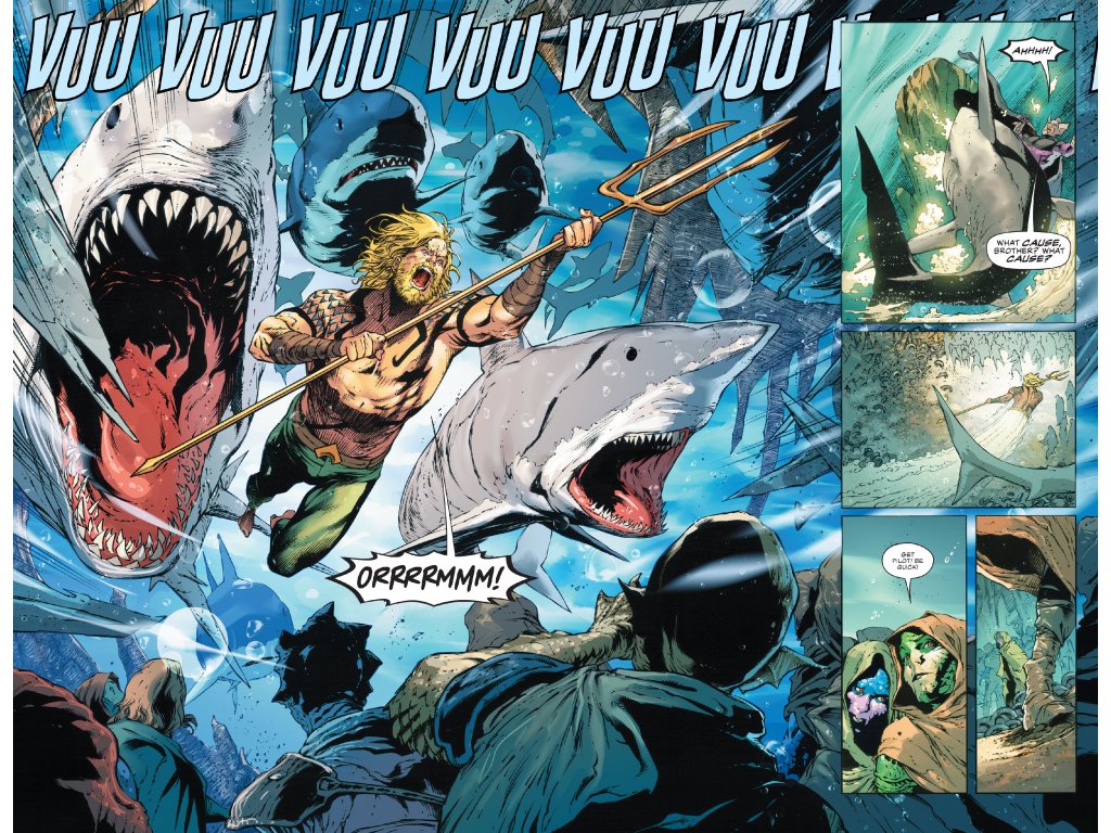 Underwater fishticuffs! It’s a battle royal as Orm’s army, a bloodthirsty elemental, and Arthur go fin-to-fin-to-fin over the future of Atlantis’s heir apparent. Alarm bells are ringing, and Mera better wake up soon, lest the kingdom come undone!