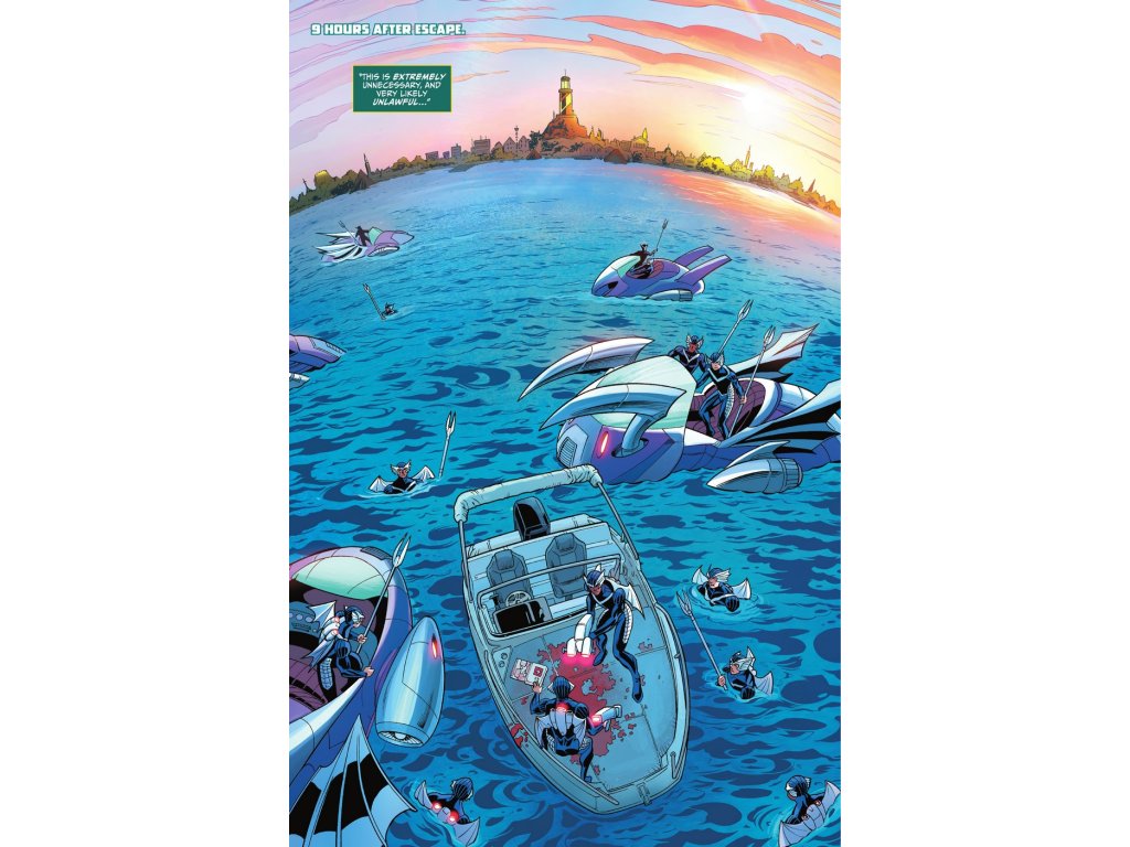 There’s no safe haven quite like home…if you can call the destroyed and abandoned West Coast Titans Tower home! Jackson may have eluded the Atlantean guard, but he’s in for the fight of his life with the mysterious villain DELUGE, who framed Jackson for the Atlantis attack and seems hell-bent on his destruction!