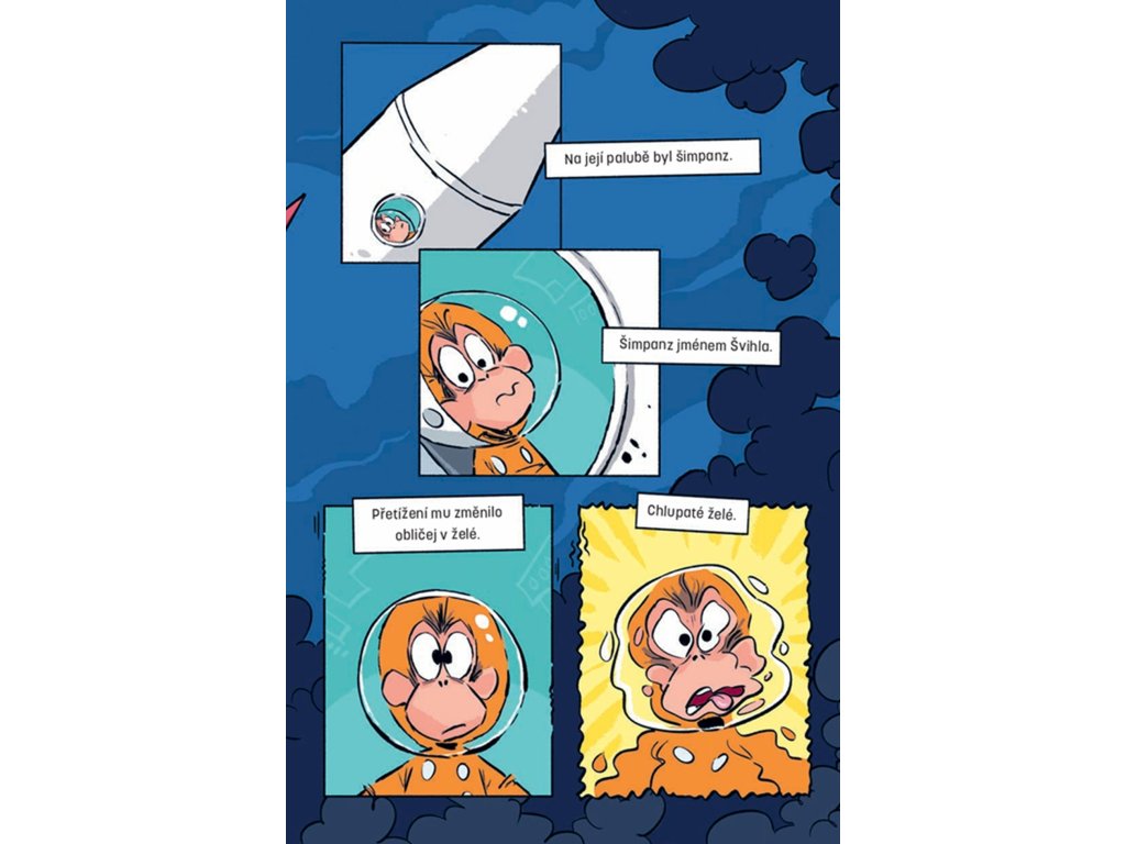 Jenže vědci z kosmického programu NASA si usmysleli, že ho vyšlou do vesmíru. Protože pokud Zemi obletí šimpanz, zvládne to i člověk. Co se může pokazit, když za řídicím panelem kosmické lodi bude sedět ne právě chytrý lidoop? Všechno! Nebezpečná mise začíná.