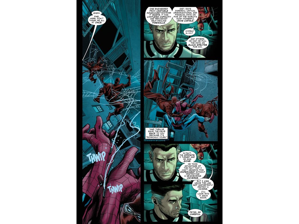 THE OMEGA EFFECT begins! Spider-Man, Daredevil, and Punisher race to find treasure that could tip the scales of justice in the heroes' favor. Will the heroes be able to overcome their differences for the greater good?