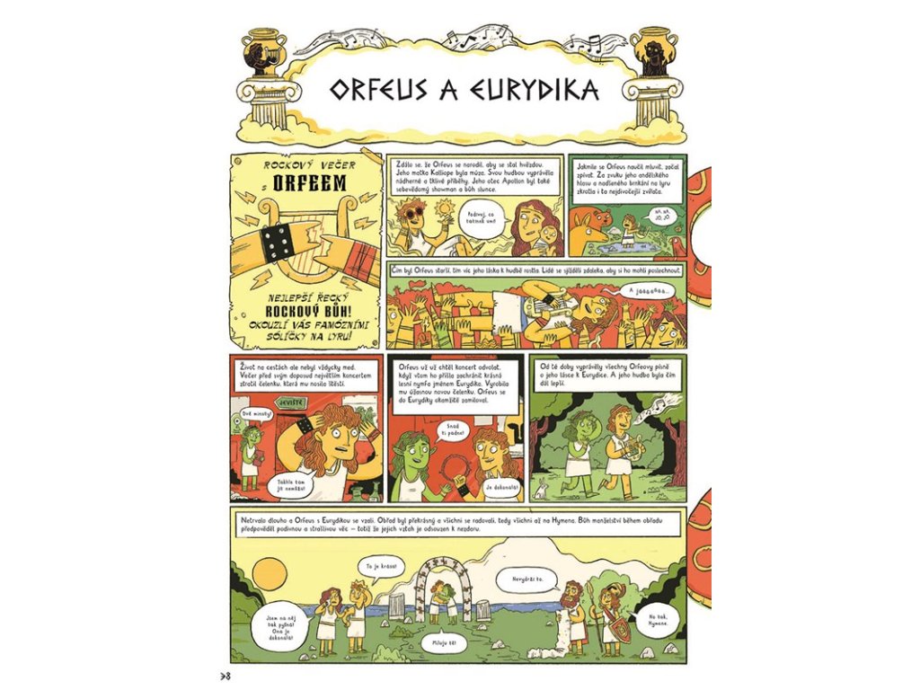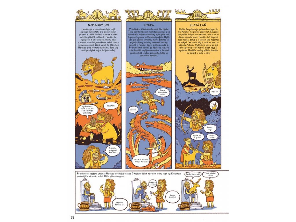 Řecké mýty patří k nejstarším a nejslavnějším příběhům, jaké si kdy lidé vyprávěli. Příběh o Orfeově lásce až za hrob, Pandořině skříňce plné neštěstí a zla, napínavé vyprávění o trójském koni i Heraklově odvaze při plnění nesplnitelných úkolů, to všechno se vešlo do téhle komiksové knihy. Svět řeckých hrdinů, bájných bytostí a smrticích nestvůr představuje James Davies v neskutečně vtipných obrázcích překypujících legračními detaily.