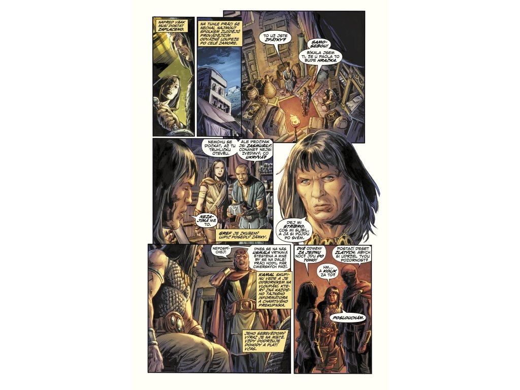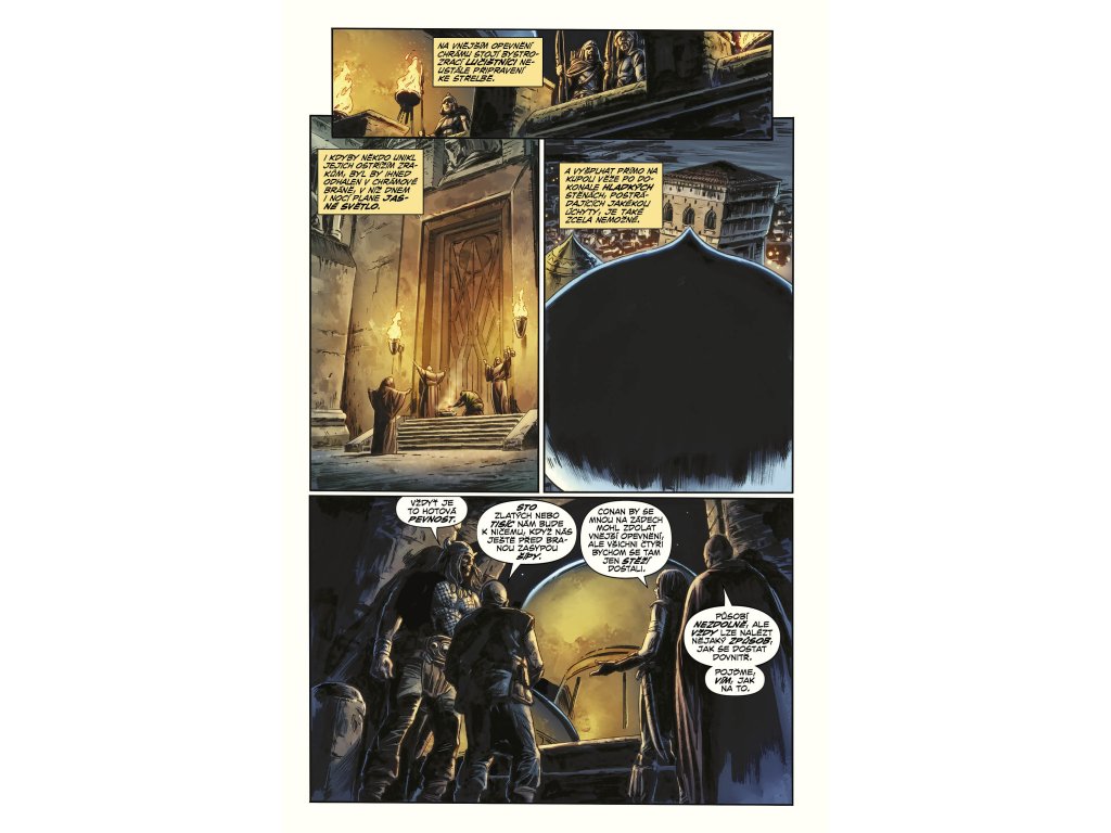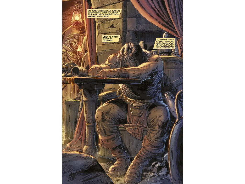 Po čase stráveném na širém moři se Conan vrací na souš a zjišťuje, že ho neustále pronásledují vzpomínky na Bêlit – královnu Černého pobřeží. Dokáže nebezpečná loupež zahnat jeho myšlenky na trýznivou minulost? Pro druhý svazek nových Conanových dobrodružství stvořili scenárista Jim Zub s výtvarníkem Dougem Braithwaitem vskutku neobyčejný a mimořádně napínavý příběh.