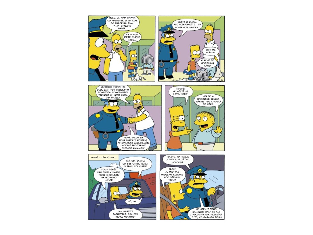Homer a šerif Wiggum jdou se svými dětmi do práce... a aby to bylo zajímavější, tak si je ještě prohodí. Jak si poradí Bart coby policista? A co provede Ralphie v atomové elektrárně? Nechte se osvítit v dalším čísle! Navíc se vypravíte i na zápas Izotopů, uvidíte východoevropskou verzi Itchyho a Scratchyho a Bart s Nelsonem rozjedou rozhlasový pořad! Je na co se těšit!