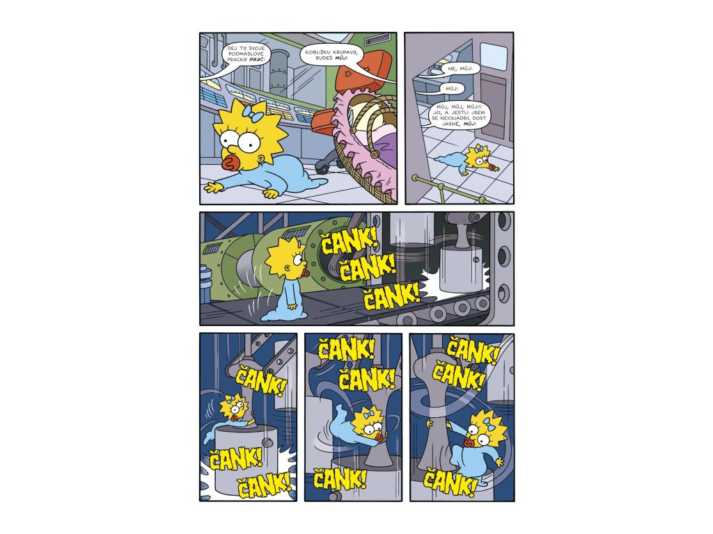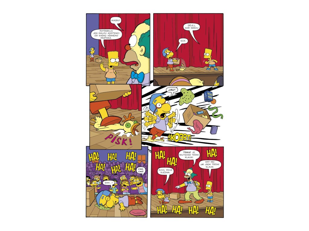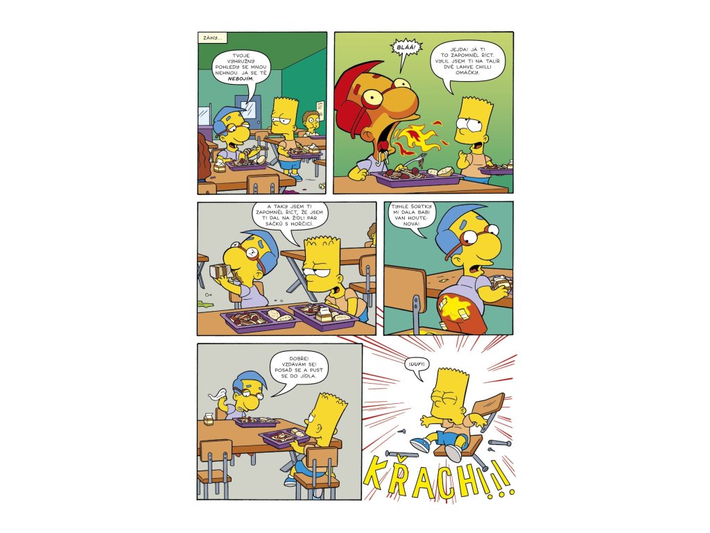 Připojte se k Bartu Simpsonovi a jeho kamarádům, kteří se utkají o titul třídního klauna, přelstí robotického školníka propadlého amoku, zasurfují si na sociální síti i v obrovské kaluži bláta, naučí se hrát blues, získají zpět elán a mnoho, mnoho dalšího! Dokonce i v případě, že si nosíte oběd v krabičce, tahle knížka vám zaručí, že splníte a dokonce i překročíte doporučenou denní dávku smíchu.