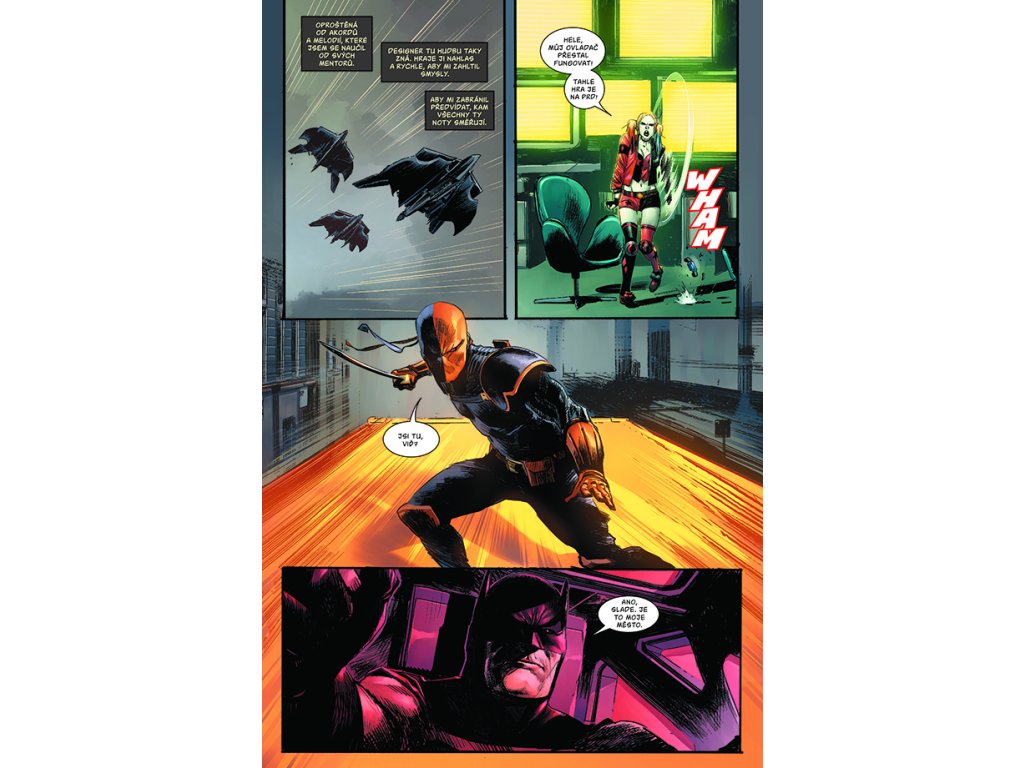 A tak zatímco se město hemží zombie policisty a Riddler je bez sebe ze své nové křížovky, Catwoman s Harley se prořezávají čím dál hlouběji do nevábného podbřišku gothamského finančního podsvětí a Batmanovi nezbývá, než se dočasně spojit s někým, kdo byl ještě na začátku této zběsilé noci jeho úhlavním nepřítelem…s Deathstrokem.