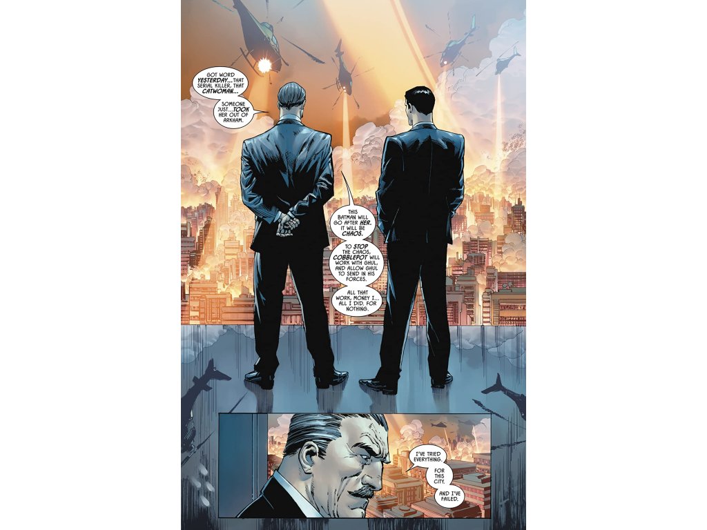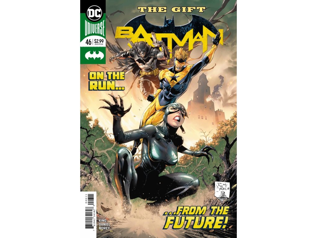 “THE TRAVELERS” part two! Booster Gold’s wedding present has screwed up Batman’s past, and done even more damage to his present. Now, with the Caped Crusader himself refusing to cooperate, the only way for Booster to correct this runaway timeline is to get Catwoman on his side. But with her own past altered, can he make Catwoman recognize the qualities in her husband-to-be that brought them together in the first place? Plus, if Batman isn’t doing his job, Gotham City may become way more dangerous than our bumbling time-traveler might be ready for.