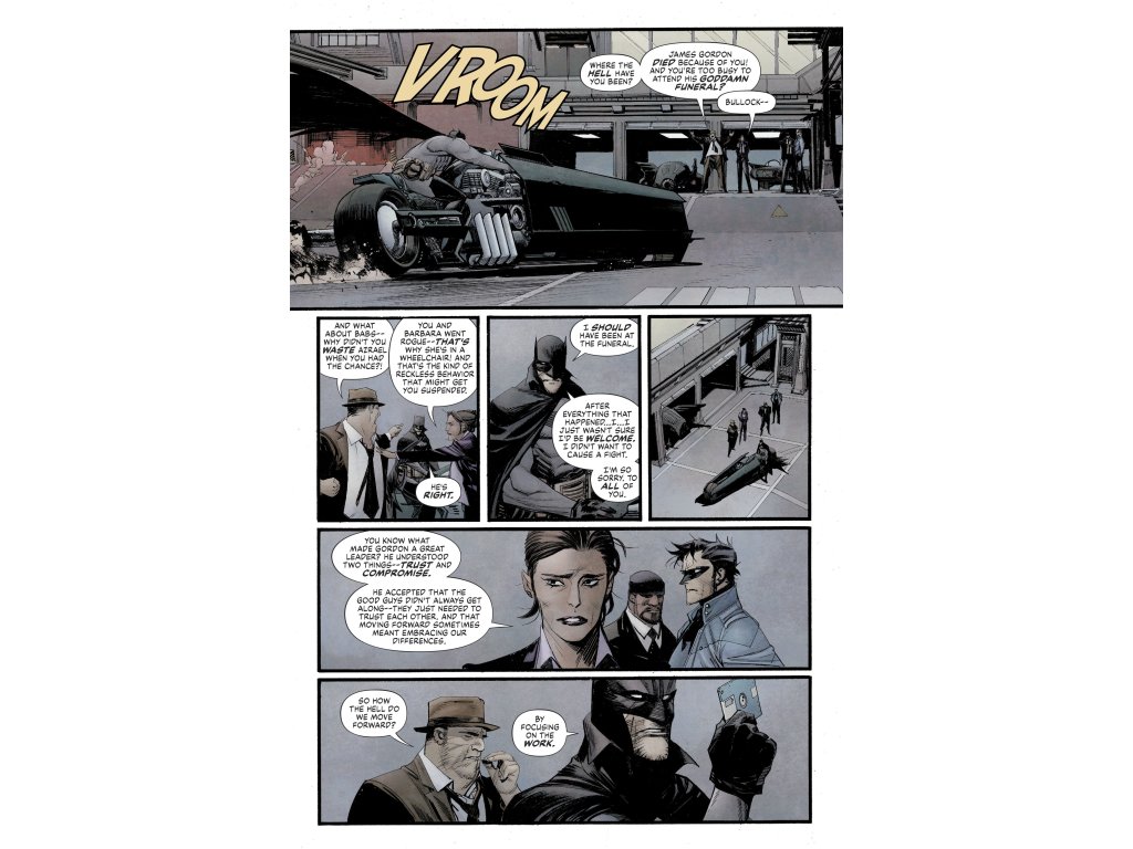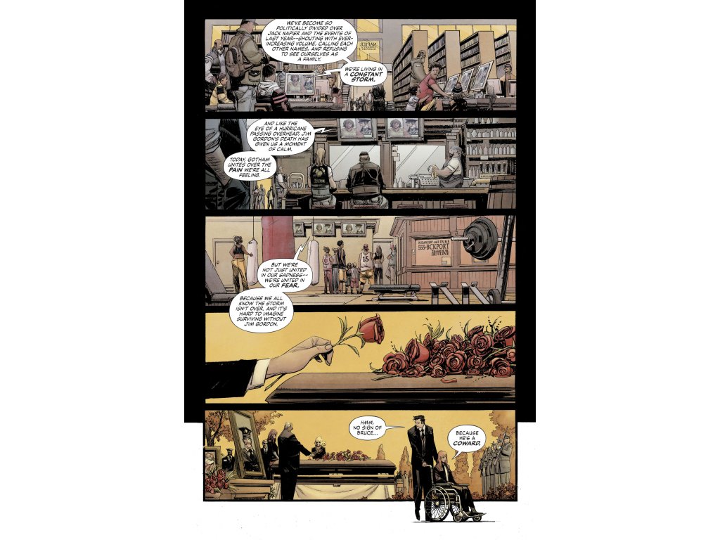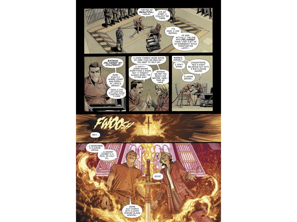 The GTO struggles to forgive Batman for his behavior on the tails of tragedy, but a promising path forward comes into focus when he uncovers a monumental clue about the mystery of Gotham’s ancestral curse. It may prove too little too late, as Azrael breaks free of Ruth’s mandate and unleashes a radical new reign of terror over the city and its competing super-criminals.