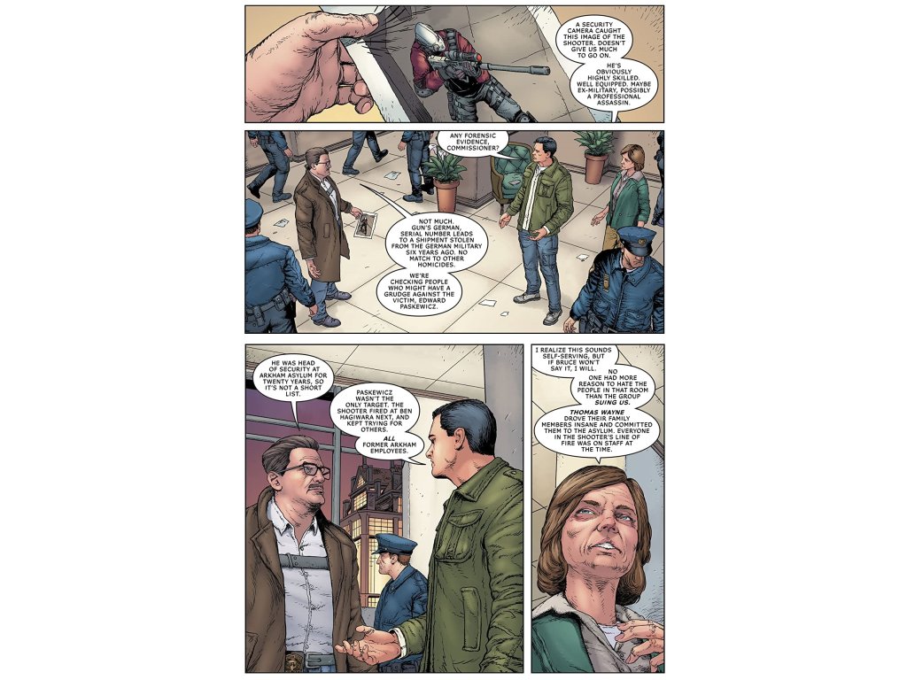 It’s a deadly game of cat and mouse as Batman tries to stop Deadshot from killing former Arkham Asylum employees, while also trying to determine just who he is and why he’s targeting them. Then Batman goes up against the Black Spider—does he work for Deadshot or one of the new mystery figures making waves in the Gotham underworld?