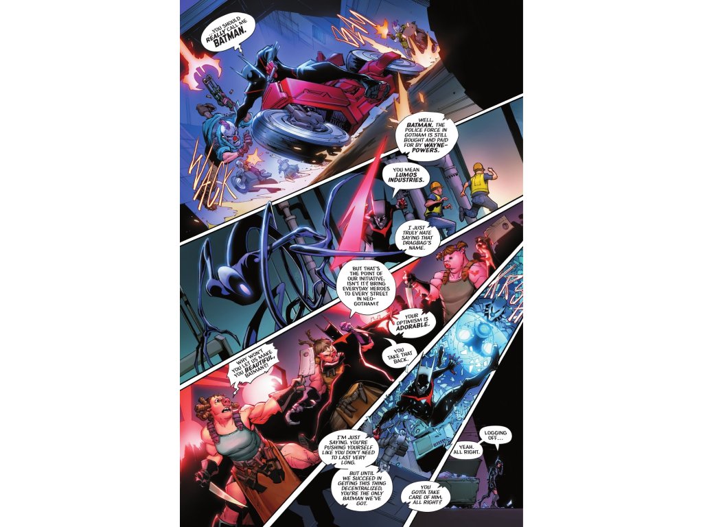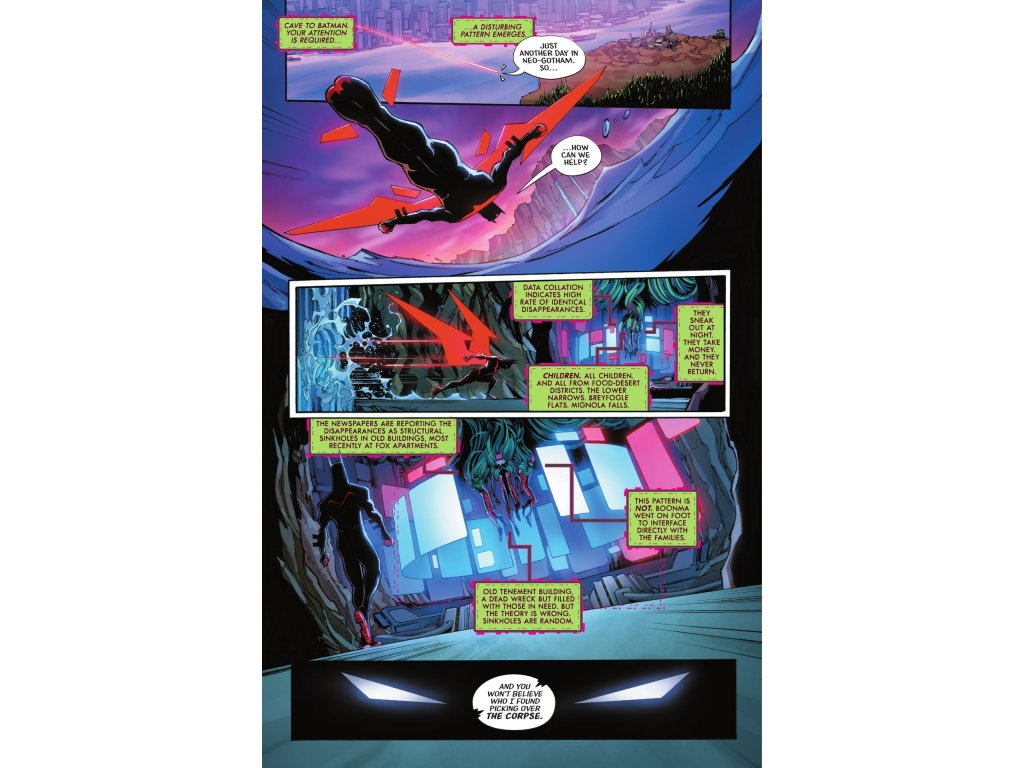 Terry McGinnis defeated the evil A.I. controlling Neo-Gotham and asserted himself as the one true Batman, but his next battle will bring him to the remains of Old Gotham. When children begin to go missing, Batman Beyond will have to venture underground, led by Kyle the Catboi, whose sorcery was obtained by the master magician himself, John Constantine! What happened to the green of the city? Where did all the magic go? And which villains never left Old Gotham?