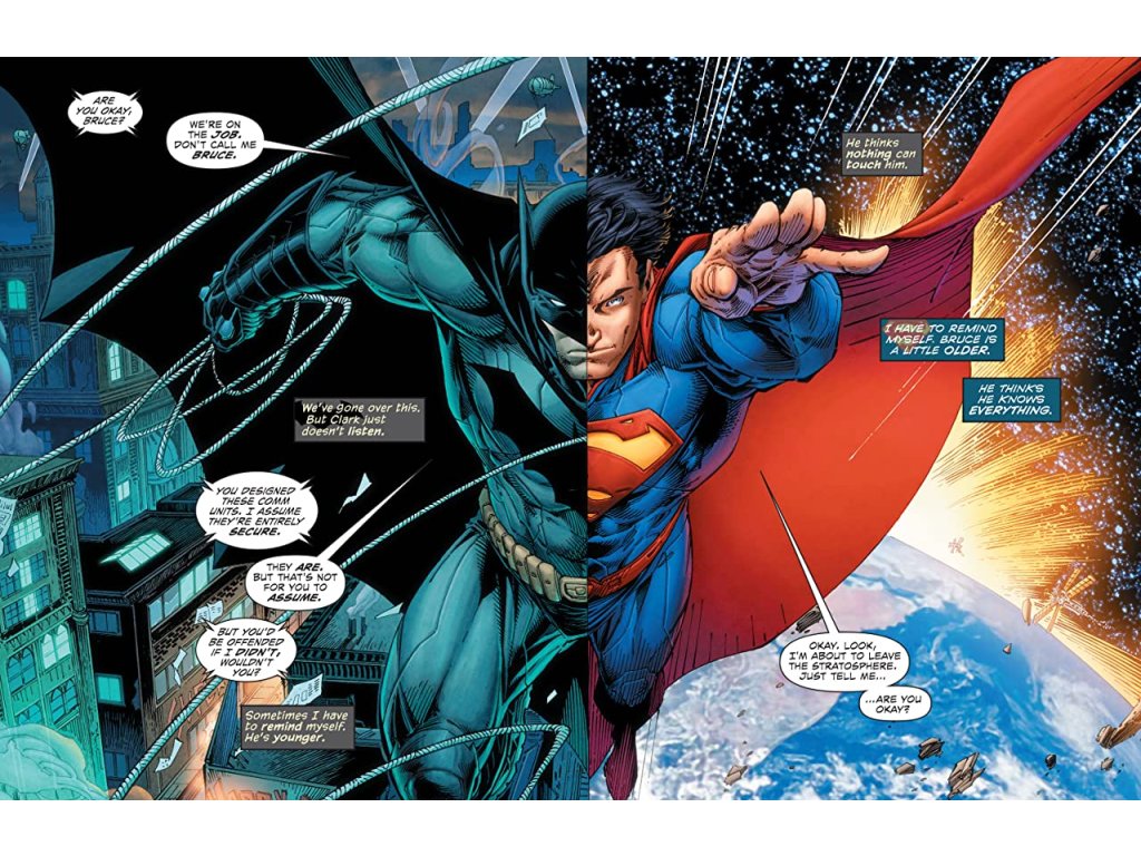 "Game Over" - When the new Toymaster uses a secret, potentially deadly element in his new video game, the characters created by players manifest in real life! The ultimate fighting game results-and a world-wide network of players must team up to create the most powerful, skilled Super Heroes imaginable with one goal: To kill Batman. Can Superman come to the rescue before the game claims its victim? Find out in this amazing issue that's printed in a special horizontal storytelling format.