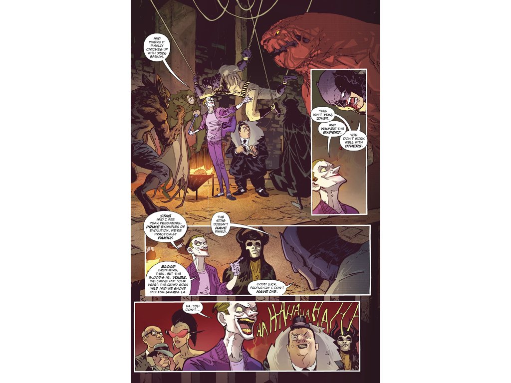 The Shadow must fight his way through Gotham City’s worst rogues in order to stop the Joker and the Stag from carving out Batman’s heart! But if he’s freed, will Batman be able to save the villains from the wrath of the Shadow?