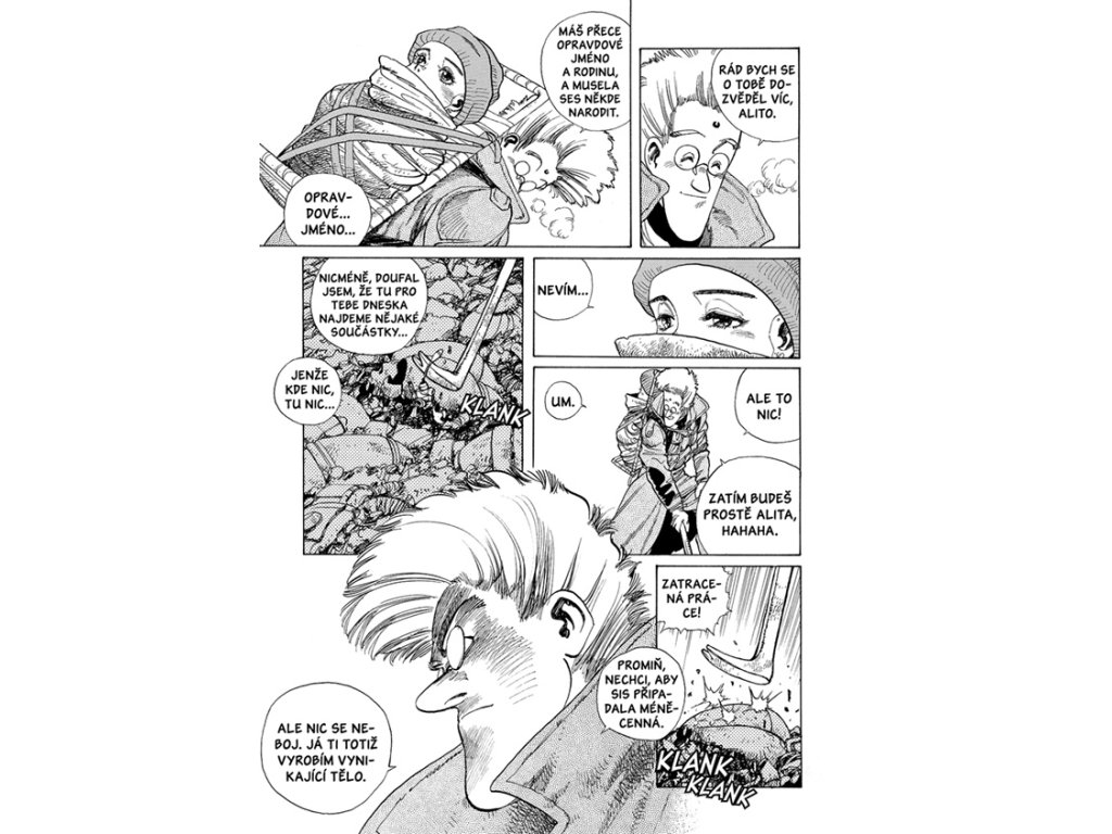 Epická akční sci-fi o bojovém robotovi, kterého najde jednoho dne doktor na vrakovišti. O robotovi, který nemá paměť, ale dokáže bojovat. Legendární manga, u které už několik let uvažuje James Cameron o filmovém zpracování, přináší nejen monumentální souboje, ale i propracovaný sci-fi příběh a velmi silné emoce. Příběh zranitelného, ale přitom smrtícího robota, který byl svržen z nebes na zem a hledá svoje místo v životě, k tomu přímo vybízí.
