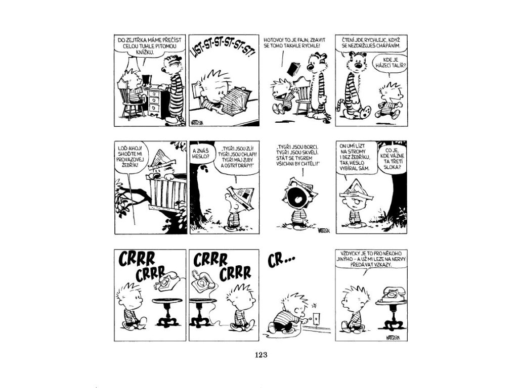 Jsou věci, u kterých jedna porce nestačí. Třeba Calvin a Hobbes. Takže už se připravuje druhá kniha, ve které se vrací nejen malý sígr Calvin a jeho věrný tygr Hobbes a s nimi i monstra pod postelí, ďábelské učitelky a možná i maniakální sněhuláci.