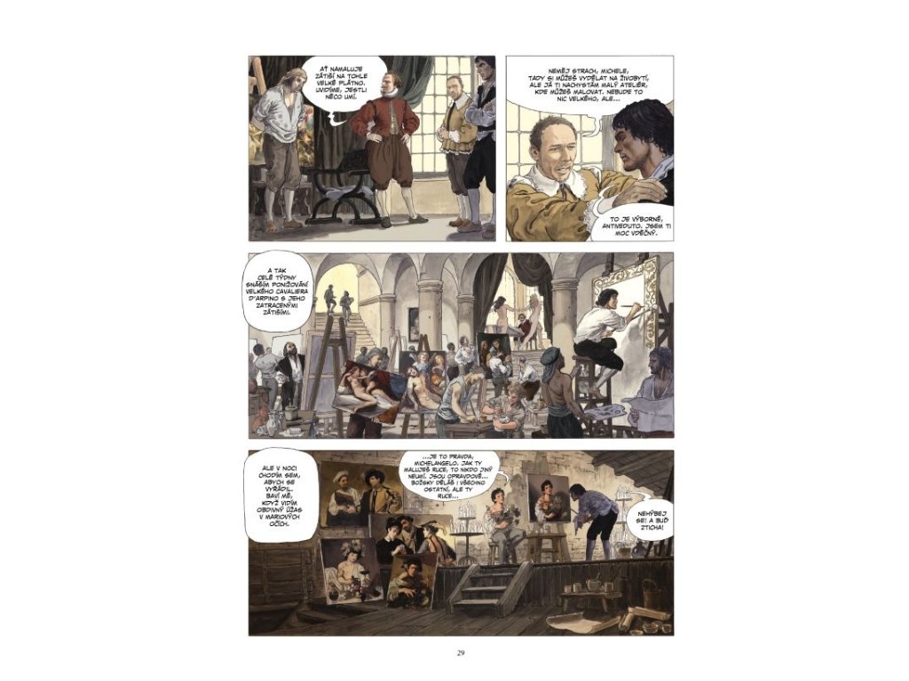 Michelangelo Merisi de Caravaggio. Jeden z nejslavnějších umělců historie. Citlivý i vzteklý, hedonista i dobrodruh, člověk, který se přes svůj krátký život zapsal do dějin umění, hlavně díky své práci se světlem a stínem. A teď se do jeho života pustil další italský mistr, Milo Manara, aby mu ve svém příběhu složil hold.