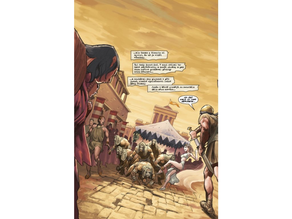 Cenami ověnčený tým Busiek, Nord a Stewart – spolu se skvělým hostujícím výtvarníkem Michaelem Wm. Kalutou – přináší další překrásné zpracování původní Howardovy povídky, kterou rozvíjí do podoby dobrodružství v žádném zpracování Conana dosud nevídané – dobrodružství plného nových spojenců, náhlých úmrtí, děsivých stvoření a pochmurného osudu bohů i lidí.