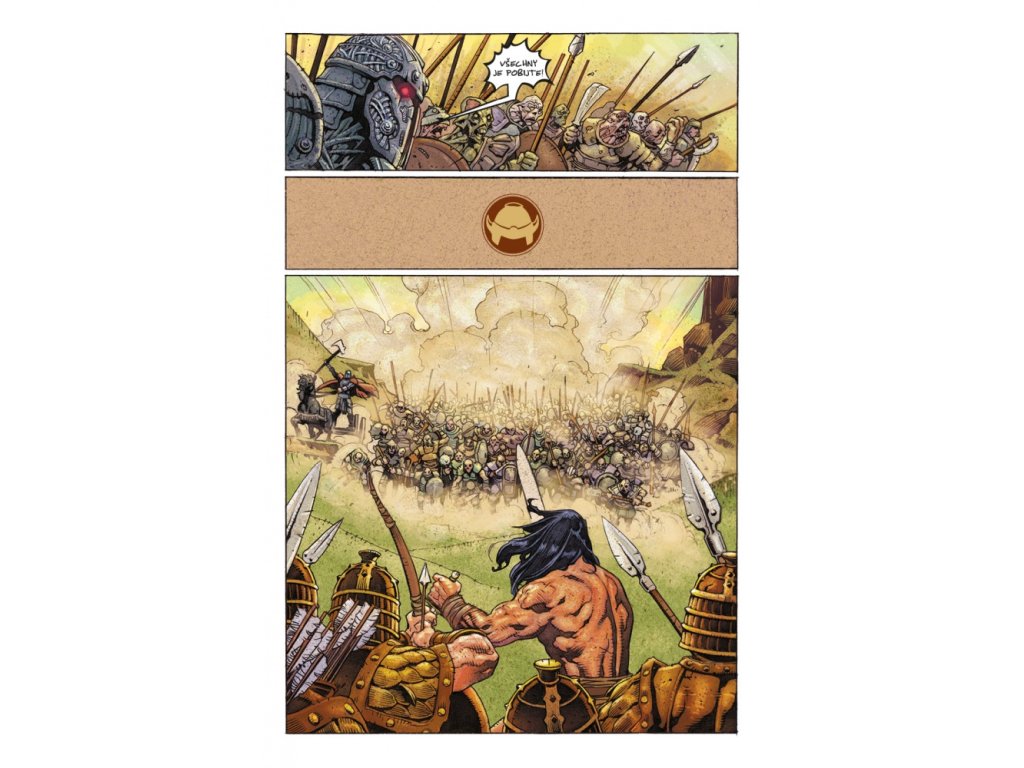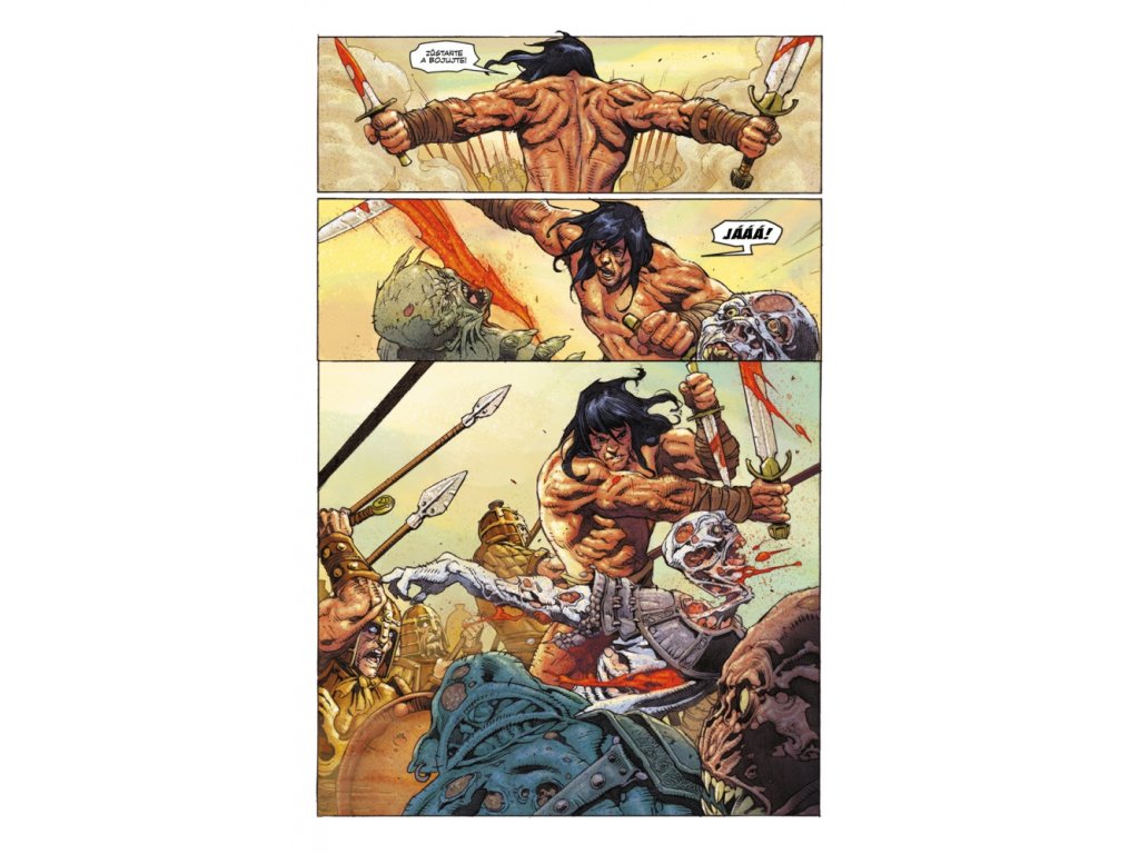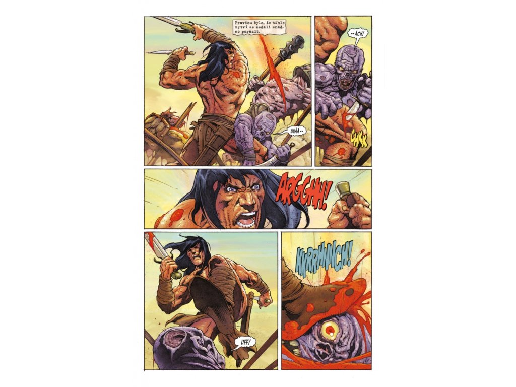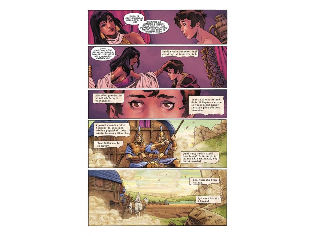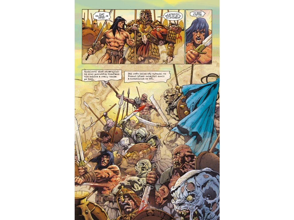V další sbírce povídek komiksových adaptací o Conanovi z dílny nakladatelství Dark Horse dopadá na mladého Cimeřana tíha jisté nedokončené záležitosti z minulosti a zároveň je mu prostřednictvím záhadného tuláka předána temná výstraha. Scenárista Timothy Truman v adaptaci nedokončené povídky Roberta E. Howarda „Nergalova paže“ odvážně spojuje několik zápletek z minulosti a přidává řadu zajímavých nápadů. Jeho zdařilá práce s postavami je patrná jak na samotném kultovním hrdinovi, tak i na pestré směsici vedlejších postaviček zlodějů, mocnářů, příležitostných žoldnéřů, čarodějů i démonů. Argentinský výtvarník Tomás Giorello oživuje příběh dechberoucími výjevy akčních bitev, stejně jako scénami s nádechem hrůzy či naopak procítěného dojetí. To vše umocňuje coloring JD Mettlera a Josého Villarrubii.