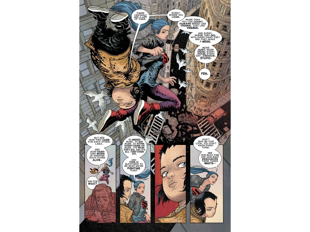 It’s been three years since the events of Dark Knight III: The Master Race. Lara has spent the time learning to be more human, and Carrie Kelley has been growing into her new role as Batwoman. But a terrifying evil has returned to Gotham City, and Lara and Carrie must team up to stop this growing threat-and they have a secret weapon. Young Jonathan Kent, “the golden child,” has a power inside of him unlike anything the world has ever seen, and it’s about to be unleashed...