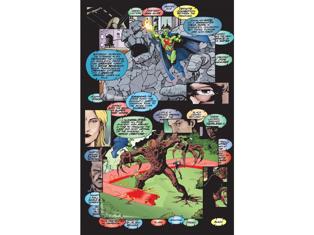 Příběh o zrodu první Americké ligy spravedlnosti ze Stříbrného věku komiksu. Členové ligy vzpomínají na to, jak bojovali se smrtelně nebezpečnými mimozemšťany schopnými proměňovat lidi například ve stromy.