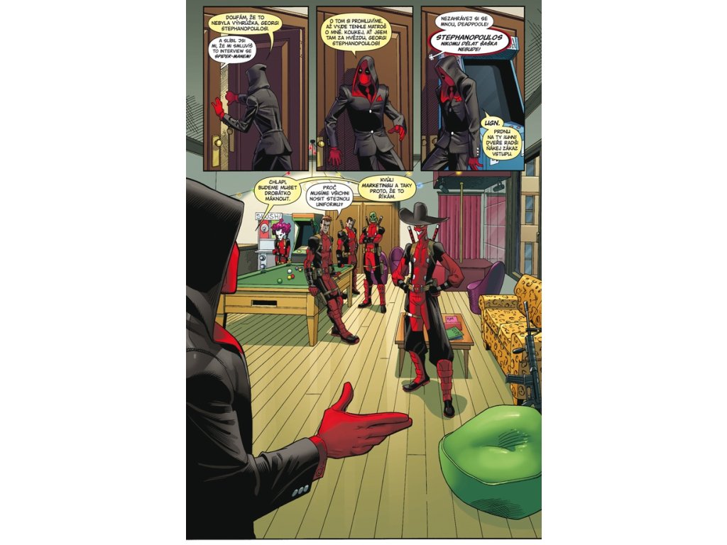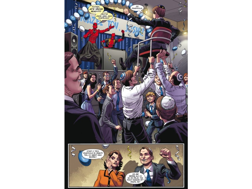 Ale veřejnost ho miluje! Bohužel, s velkou popularitou přichází nesnesitelná zodpovědnost, a tak musí Deadpool sem tam někomu pomoct. Nebudete věřit – a budete valit bulvy – s kým to dal dohromady! Jenže pak se objeví Deadpoolův napodobitel, který mu chce rozsekat život na maděru, a náš hrdina musí použít dokonalou návnadu: svou nevinnou dcerku Ellie! V tomhle komiksu najdete víc Deadpoola, než jste si kdy mohli přát!