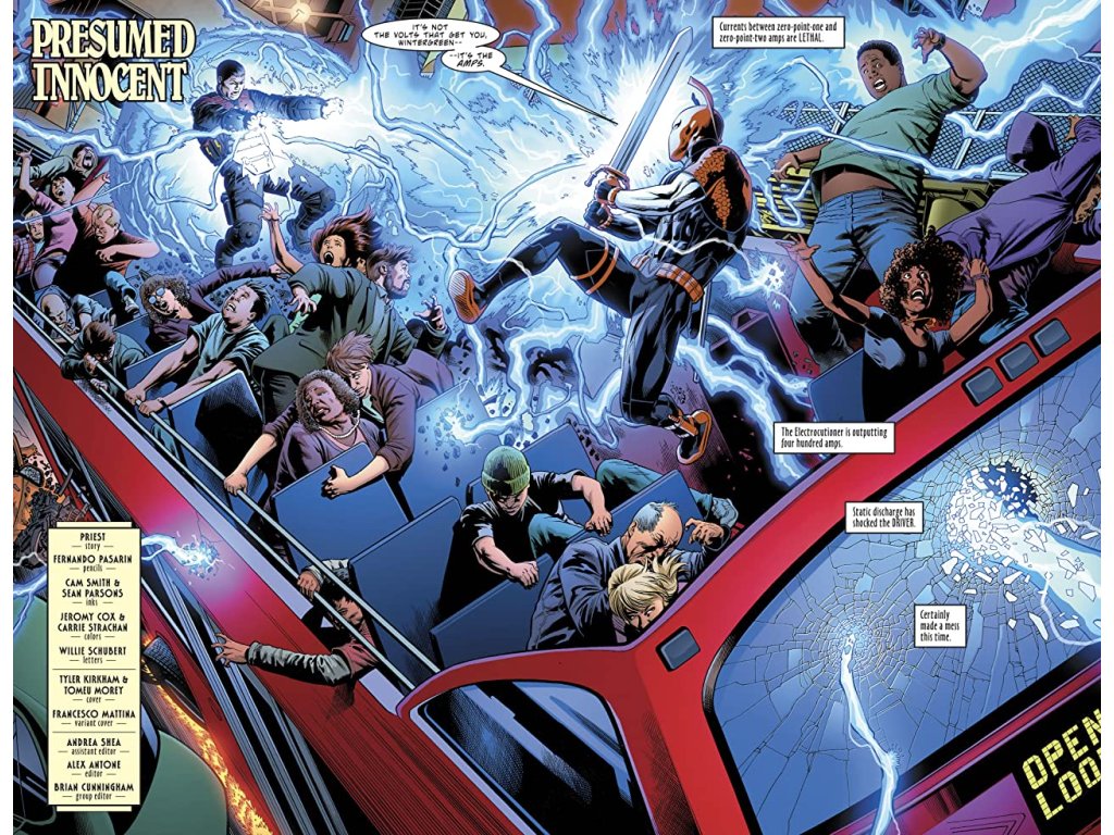 A prelude to “The Terminus Agenda”! The road to the highly anticipated Teen Titans/Deathstroke crossover event starts here! Deathstroke’s body count has grown even higher after murdering his therapist en route to escaping from Arkham Asylum, which prompts Commissioner Gordon to expose Slade’s identity as Deathstroke to the public! Now the world’s most wanted criminal, the walls are closing in on Slade Wilson, and a new threat, Damian Wayne’s newest Teen Titans, waits around the corner...Is there any hope of escape for the World’s Deadliest Assassin?