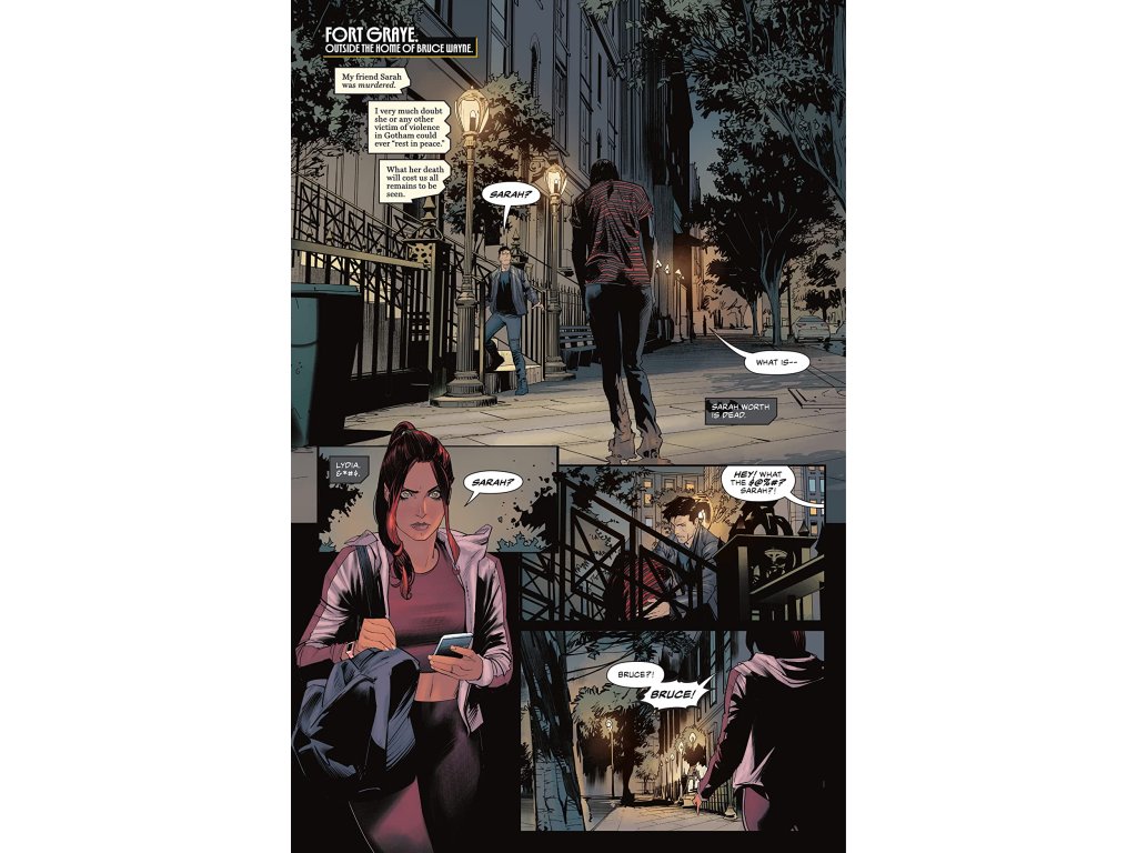 And the backup story, “Huntress and the Hunted,” zeroes in on Gotham’s own Violet Vengeance! In the previous chapter, her world was rocked by the gruesome murder of a dear friend... but there’s more to this sinister scene than meets the eye!