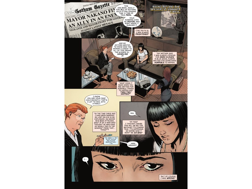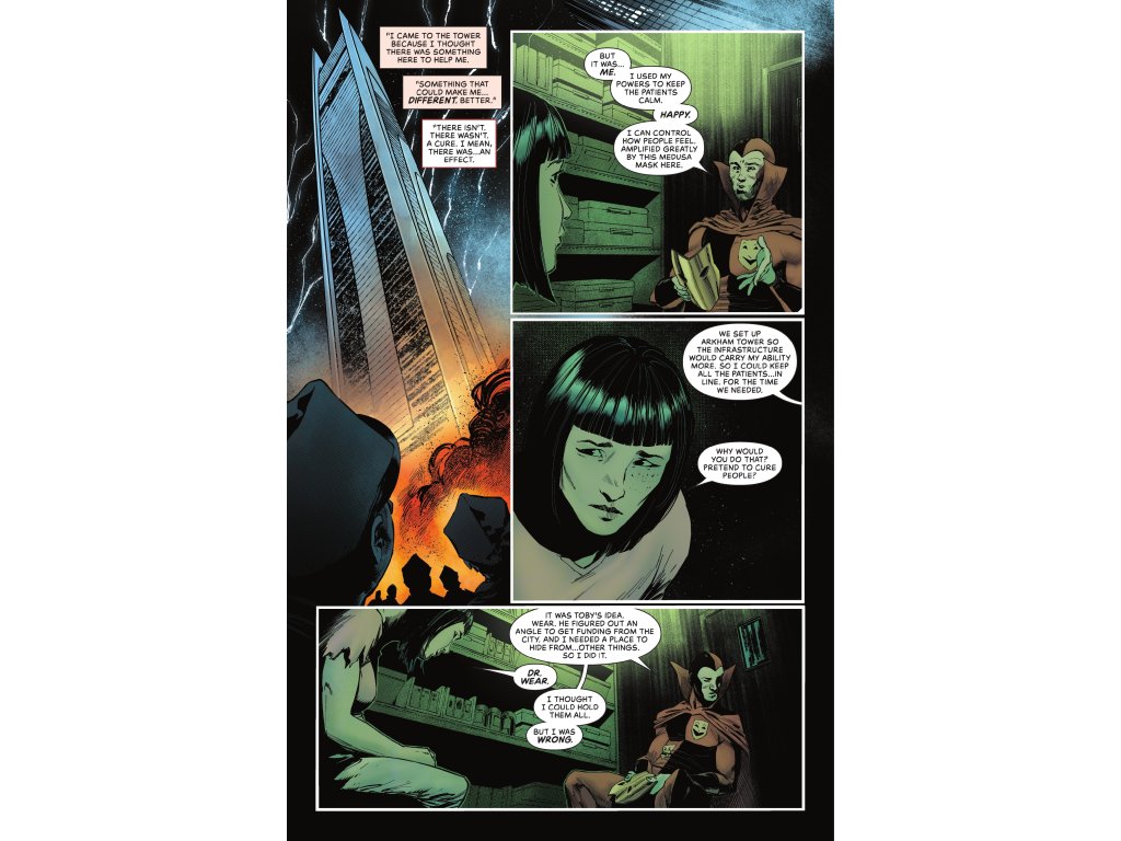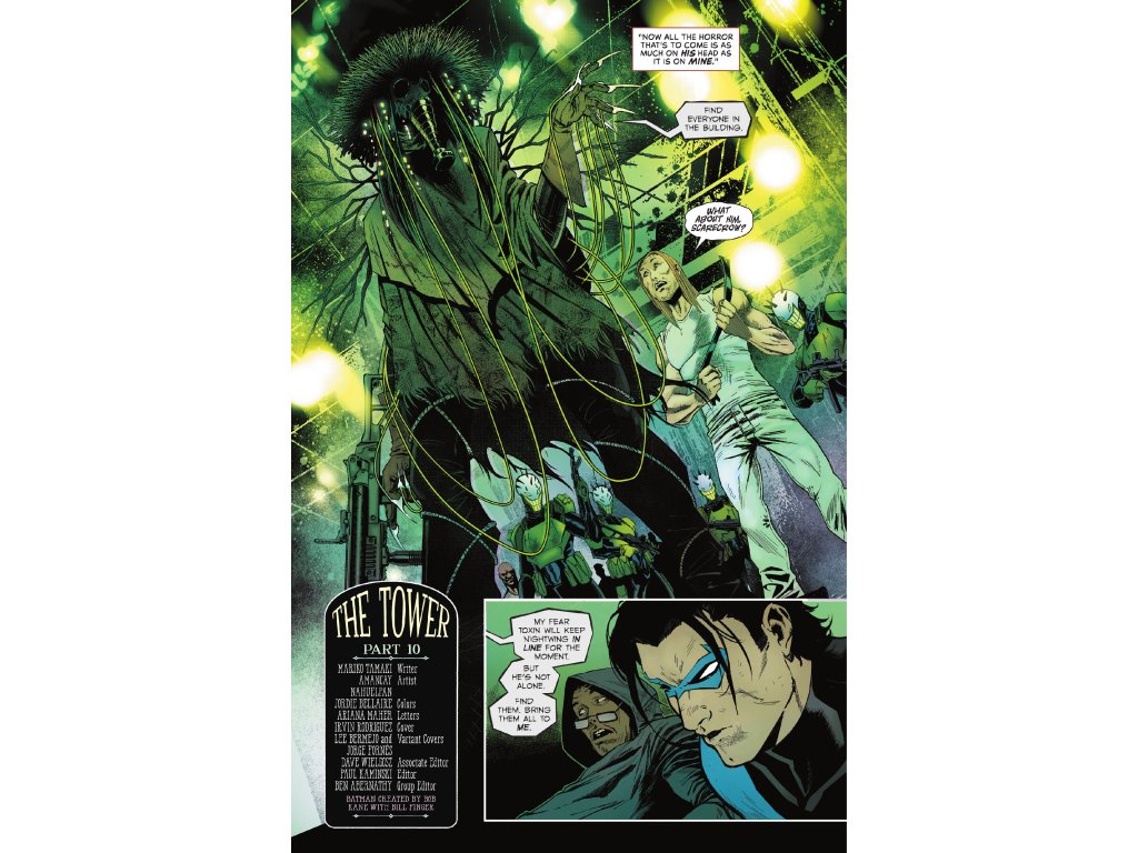 The Scarecrow stalks The Tower! Dr. Jonathan Crane, who recently terrorized Gotham City during 'Fear State,' is but one of many villainous inhabitants of Arkham Tower jockeying for position as leader of the hostage situation unfolding before everyone's eyes. But with security down, Huntress, Nightwing, and Harley Quinn are no longer quite so outnumbered...here come Batwoman, the Batgirls, and Tim Drake to the rescue! Can the Bat-Family save the innocent civilians caught in the crossfire? And that's not the only help arriving on the scene...