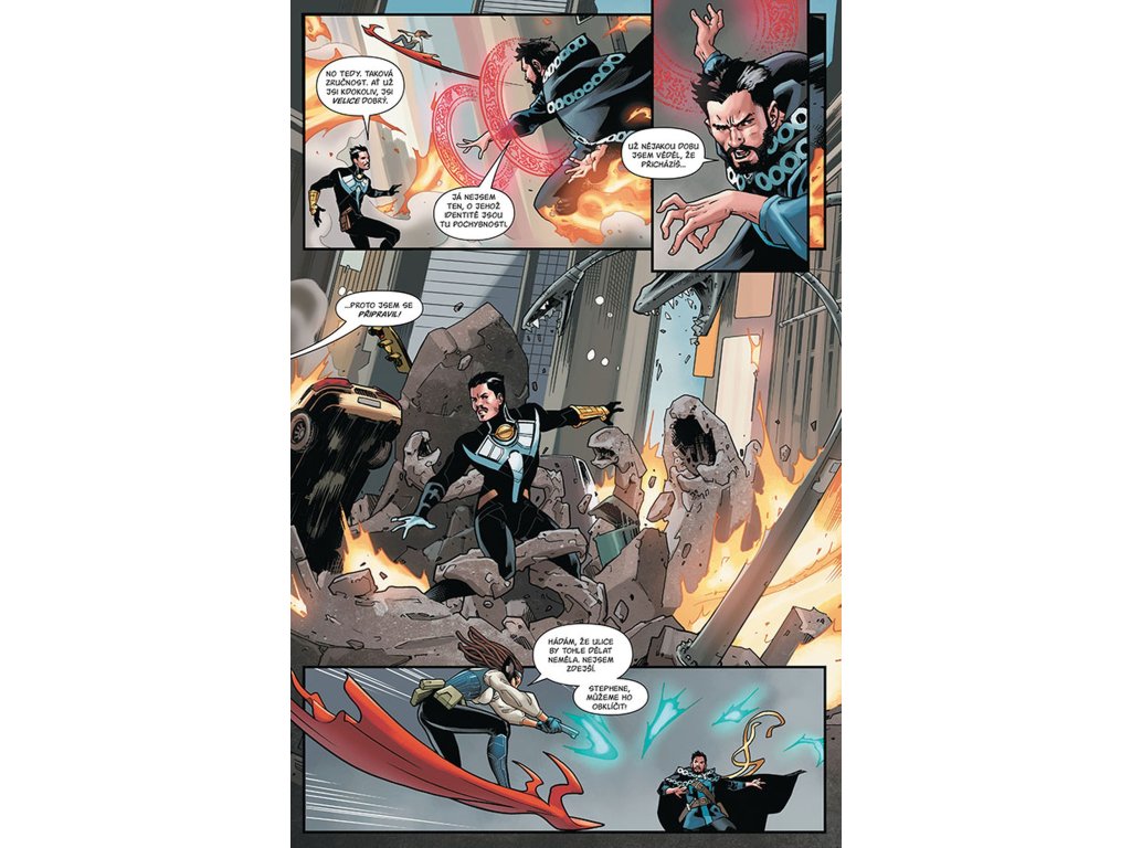 Mezitím, co se Stephen vydal do kosmu, se přihodilo cosi bizarního – a nevěstí to nic dobrého. Je načase připravit se, vzít situaci pevně do rukou a vybavit se novým arzenálem, protože věc se má tak, že se Stephen Strange stal sám sobě tím nejhorším nepřítelem. A to doslova! A jako by nebyla tahle zvrácená záhada málo, objevuje se padouch ze Strangeovy minulosti a ohrožuje Sanctum Sanctorum způsobem, jaký Stephen ještě nezažil! Už celé měsíce spřádá na pozadí své plány záhadná postava, která Stephena i ostatní mágy oslabuje... a teď konečně spadla klec. Má Strange nějakou šanci proti záhadnému protivníkovi, který ovládá veškerou magii; proti nepříteli, který ho dokáže připravit o všechna kouzla pouhým lusknutím prstů? Přijměte pozvání mezi hvězdné kreslíře a přečtěte si tento monumentální, podivný příběh!