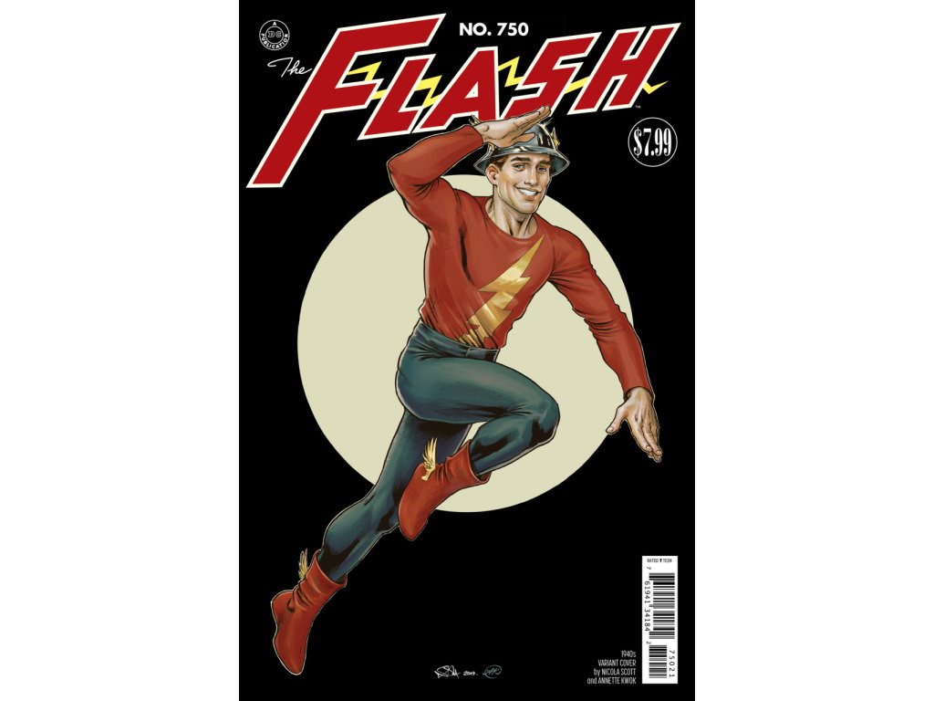 Beginning: “The Flash Age”! The story we’ve been building toward since issue #50 comes to a head! While a supercharged Speed Force wreaks havoc on Barry Allen’s life, a new threat appears on the horizon in the form of the deadly Paradox. Destined to destroy the Flash’s legacy, Paradox sends his herald, Godspeed, to trap the Flash family! Plus, in this special anniversary issue: tales from across the generations of super-speedsters by an all-star lineup of writers and artists!