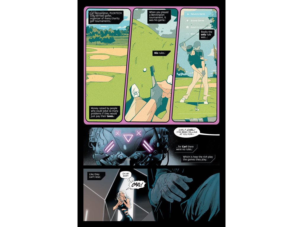 And in “Grifters” part two, the lucky streak that Cole Cash and Luke Fox have enjoyed just hit a brick wall in the form of the Huntress! The over-the-top adventure in the gutters of Gotham City concludes in the most bone-crushing fashion possible!