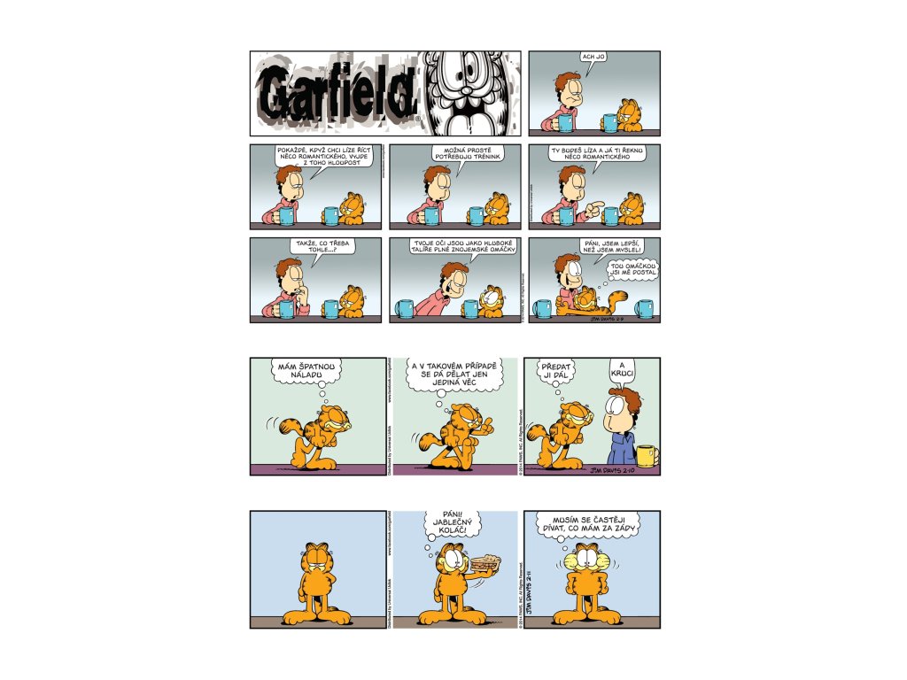 Když je Garfieldovo břicho prázdné, smutně kručí, zato plné vypráví jeden vtip za druhým!