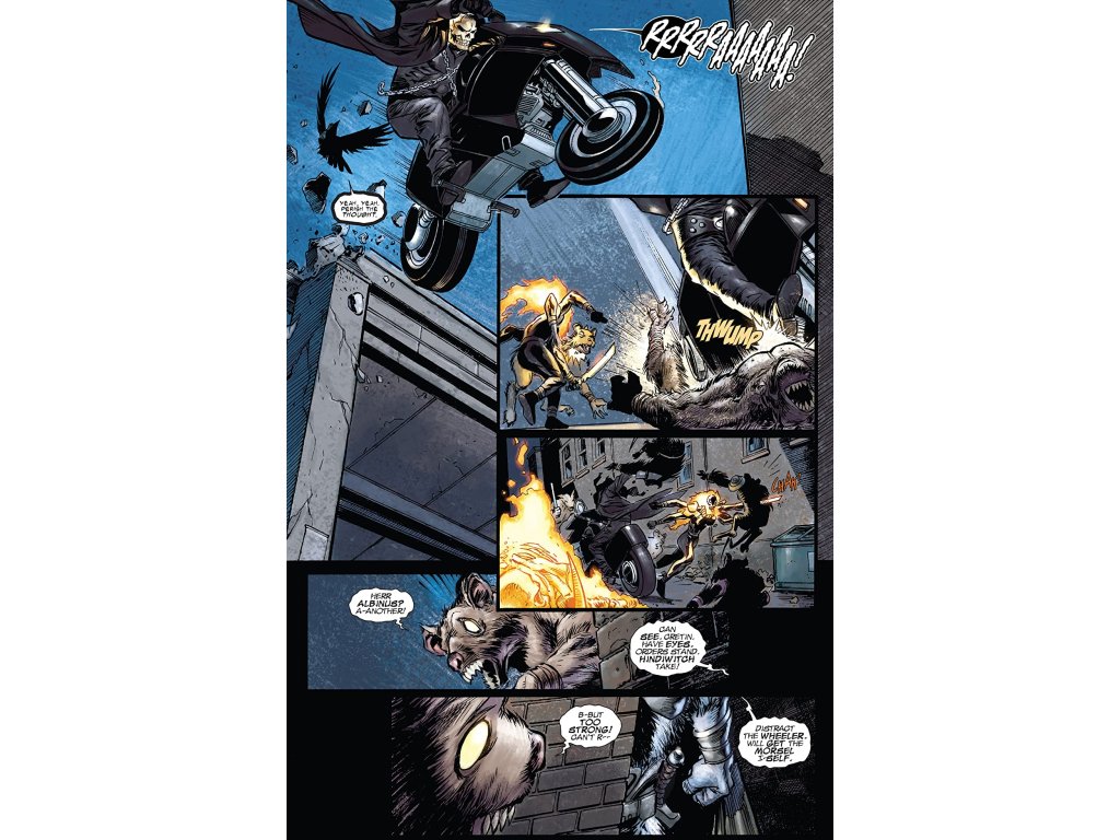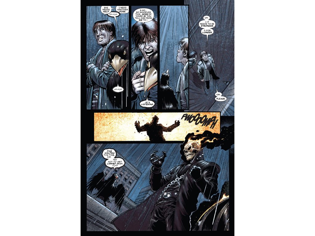 Rats! Rampages! Revelations! With the mystery and madcappery ratcheting up a spike-encrusted notch, Danny Ketch finally receives some of the answers he's been hunting. What's the true origin of the Spirit of Vengeance? What's its true history? What pointy-toothed terror is back from death to gnaw at his soul? And what the hell is he doing one mile beneath the Antarctic icecap with only a talking magpie for company? Saltares and Spurrier serve-up a history lesson that'll shake the way you see the Ghost Rider mythos forever. Vvvveeeengeaaance!