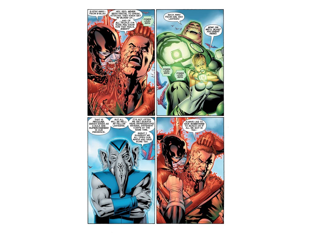 Guy Gardner, Kilowog, Arisia and the Red Lantern Bleez head to Odym, home of the Blue Lanterns, after discovering the red light still holds sway over the hot-headed Emerald Warrior. "Last Will" Part 3!