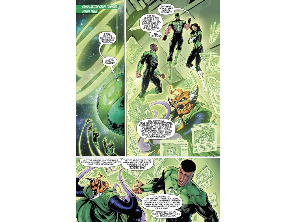 Green Lanterns Simon Baz and Jessica Cruz have tracked the criminal ring to a religious organization buried deep in the Horsehead Nebula. What does the Order of the Steed need with superheroes from Earth-and will Simon and Jess get stampeded in the process?
