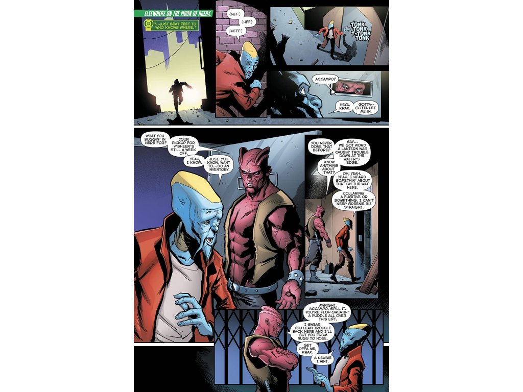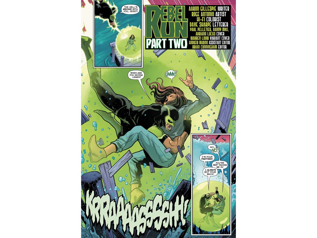 “REBEL RUN” part two! Simon Baz and Jessica Cruz hide from Hal Jordan and the Green Lantern Corps on the planet Hellhole. While the two butt heads over what to do next, they find an ancient threat that has been slumbering within the core of this crime-infested world. It has been feeding, and it is ready to wake and strike!