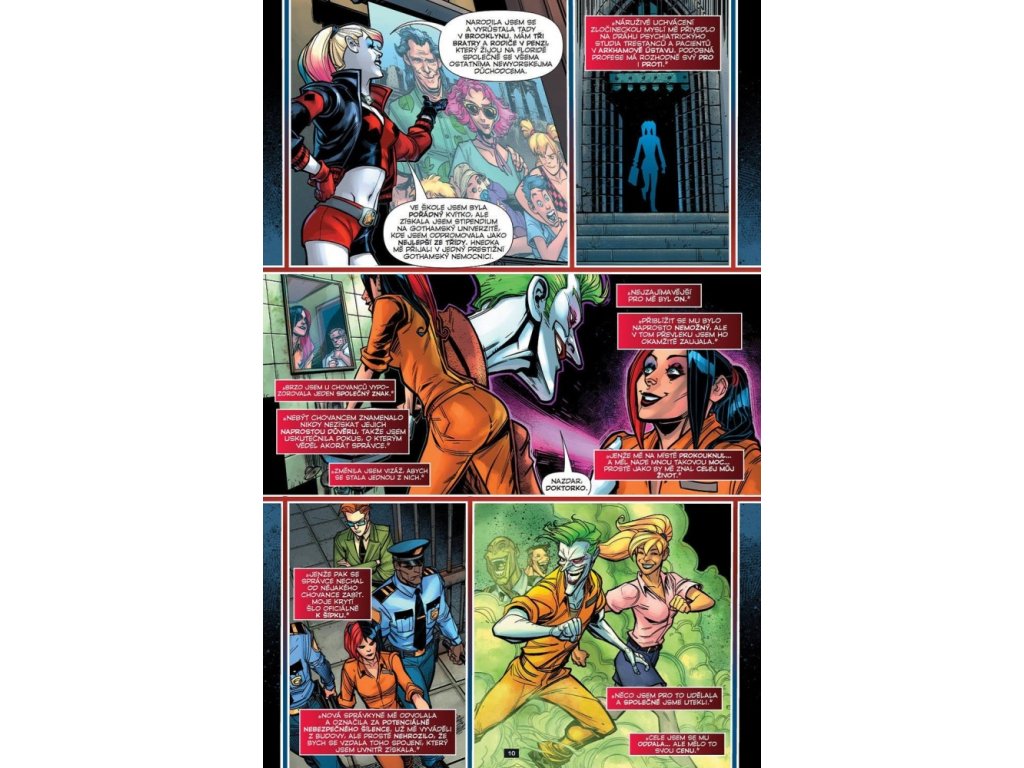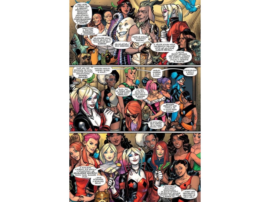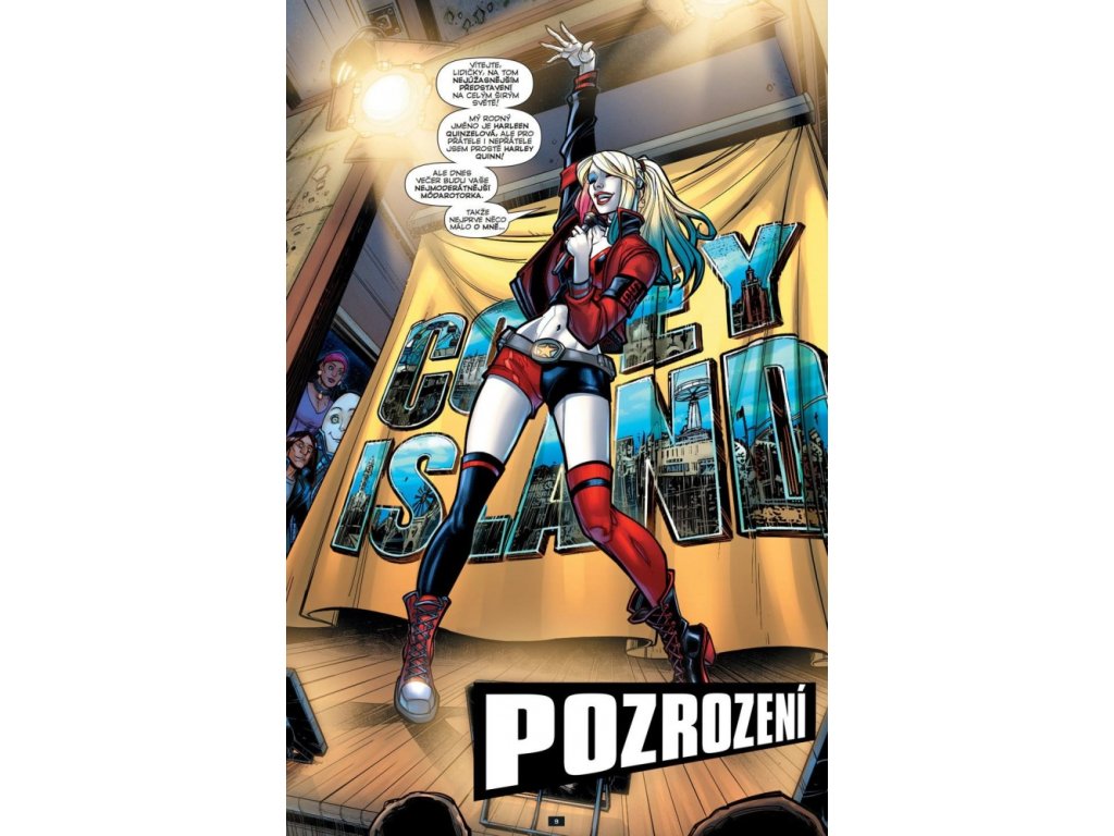Jmenuje se doktorka Harleen Quinzelová, ale přátelé i nepřátelé jí říkají prostě Harley Quinn. Její naprosto a definitivně bývalý přítel Joker je sice nesporný korunní kašpar zločinu, ale Harley je zase královna Coney Islandu! A když existenci jejího malého kousku přímořského ráje ohrozí zombie apokalypsa, koho jiného zavoláte, aby nemrtvým ustřelil palici? Na nesmírně hlubokomyslných stránkách tohoto zásadního díla se nejpadouštější padouška celého vesmíru DC spřáhne s kýmkoliv počínaje svou kámoškou Poison Ivy až po největší celebrity newyorské punkové scény, a rozbije kukuč všem, kdo jí brání to pořádně rozjet – živým i nemrtvým. Pěsti sviští, kladiva dopadají, borci budou ztýráni a dámy ovládnou noc!