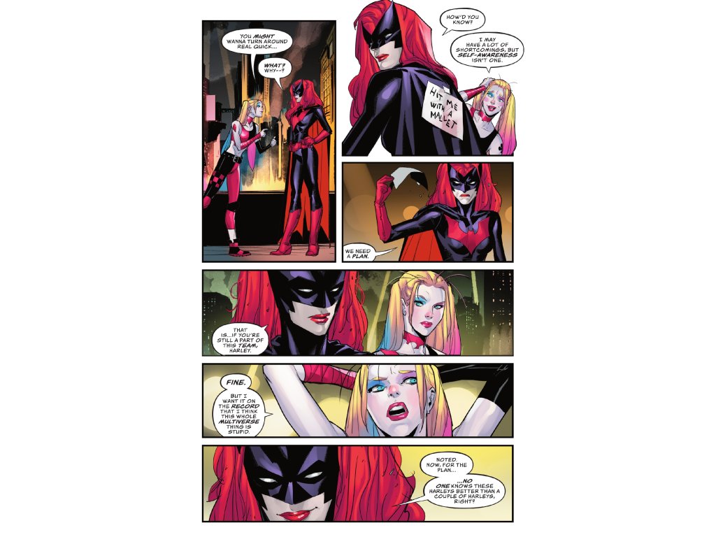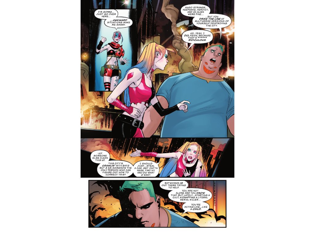 What's fifty Harley Quinns from all over the Multiverse plus one interdimensional murderer hell-bent on killing all of the aforementioned Harleys, divided by two very hungry hyenas, all to the power of Kevin…? 23. Obviously. But, also, a really weird way to spend your weekend. Nothing like meeting yourself 49 times to give you a real good existential crisis! I'm not one for self-doubt and all that…but it's hard not to be at least a little jealous of mermaid Harley.