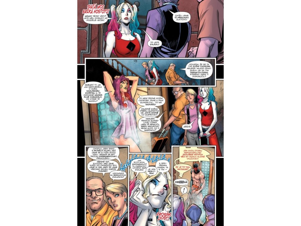 Přesně tak, lidičky, pan a paní Quinzelovi přijeli na návštěvu. A chtějí poznat nejen krásy New Yorku, ale hlavně všechny přátele své milované příšerky, její nejlepší (zas jen) kamarádkou Poison Ivy počínaje a superkámoškou Power Girl rozhodně nekonče. Jenže to každodenní šílenství, které Harley zažívá, už dávno ani vzdáleně nespadá do kolonky pouhého „alternativního životního stylu“, a tak není divu, že je naše bledá hrdinka studem rudá až za ušima.