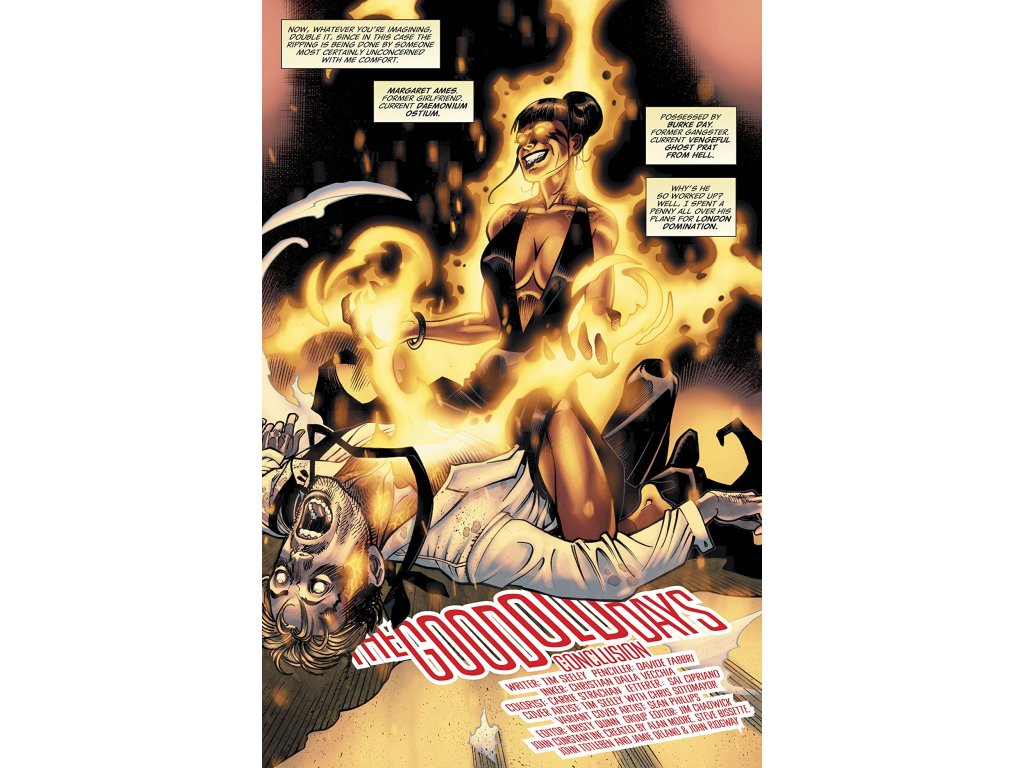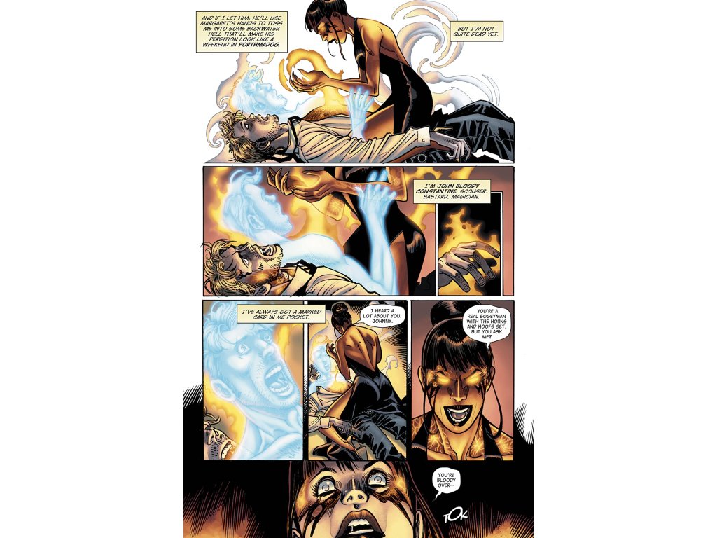 What would you sacrifice to save someone from damnation? The final chapter of “The Good Old Days” puts what may be the final nail in John Constantine’s coffin: preparing to say goodbye to this mortal coil, John’s oddly introspective, brooding over an ex-lover who’s possessed by demons. Since she can’t be exorcised, she’s bound for Hell-unless John makes the ultimate sacrifice and takes her place. Pack light, John-we hear it’s warm where you’re going.
