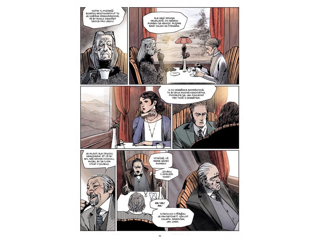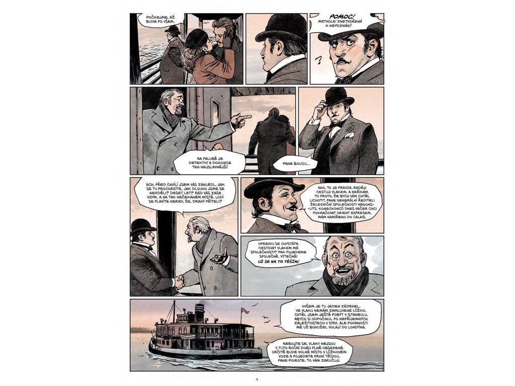 Jeden z nejslavnějších případů slavného belgického detektiva v komiksové podobě. Hercule Poirot obdrží v Istanbulu telegram, aby se urychleně vrátil zpět do Londýna. Koupí si proto jízdenku na slavný Orient Express. Zápletka na sebe nenechá dlouho čekat – dvanácti bodnými ranami je zavražděn jeden z cestujících, bohatý Američan Samuel Ratchett. Při vyšetřování případu s mnoha podezřelými hraje hlavní roli čas. Geniální detektiv a jeho buňky šedé kůry mozkové musí odhalit vraha dřív, než se objeví další oběť.